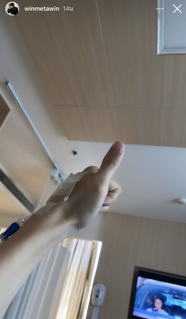 ซึ่งเวลาต่อมาหนุ่มวินได้โพสต์ภาพในไอจีสตอรี่เป็นภาพชู้นิ้วโป้งที่กำลังนอนให้น้ำเกลือที่โรงพยาบาล งานนี้พอแฟนคลับเห็นต่างก็เข้ามาส่งกำลังใจให้อย่างล้นหลาม เชื่อว่าได้กำลังใจดีจากแฟนคลับแบบนี้เดียวก็หายแล้วใช่ไหมจ้า