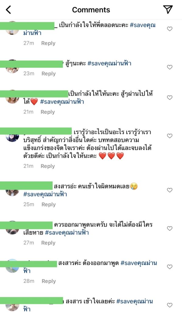 งานนี้เรียกว่ากำลังใจที่ส่งให้ “ดร.ม่านฟ้า อรปภัตร จันทรสาขา” นั้นหล้นหลามจริงๆ เพราะจากดราม่านี้ทำให้มีคนดังหลายคนรวมถึงชาวเน็ตเข้ามาให้กำลังใจและติด #saveคุณม่านฟ้า กันถล่มทลาย จนเจ้าตัวต้องโพสต์ขอบคุณทุกๆกำลังใจที่ส่งมาให้ พร้อมทั้งฝากไปถึงสาว”จ๊ะ” ว่าอยากจบเรื่องนี้ด้วยการออกมายืนยันว่าไฮโซที่ขายกระเป๋าปลอมนั้นไม่ใช่ตนเองผ่านอินสตาแกรมส่วนตัวว่า