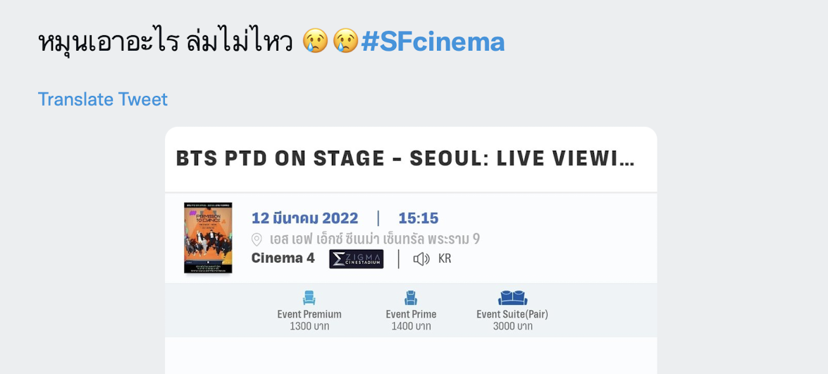 มีเงินอย่างเดียวคงไม่พอต้องมีแต้มบุญด้วย กับศึกชิงตั๋วดูคอนเสิร์ตออนไลน์ในโรงหนังที่ Sold Out ทุกรอบทุกโรงอย่างรวดเร็วในเวลาไม่กี่ชั่วโมง สมชื่อเสียงความดังของ 7 หนุ่ม BTS ที่ดังจนไม่รู้หาคำไหนมาอวยแล้ว กับ BTS PTD ON STAGE – SEOUL: LIVE VIEWING