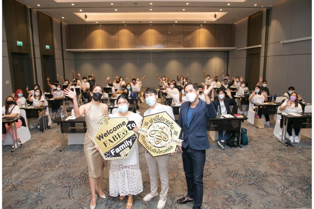 โดยบรรยากาศการจัดงานอยู่ภายใต้มาตรการป้องกันโควิด-19 ขั้นสูงสุด ตัวแทนฟาบีโอ้ และทีมงานทุกคนต้องตรวจATK และวัดอุณหภูมิก่อนเข้างาน จากนั้นสองผู้บริหาร “บอสบีบอสฟาโรห์” ขึ้นเวทีเพื่อบอกเล่าถึงที่มีที่ไปและความพิเศษของแบรนด์ฟาบีโอ้ตัวช่วยระดับไฮเอนแห่งการดูแลริ้วรอย 4 สารสกัด สเต็มเซลล์รกแกะ นมผึ้ง คิวเทน และ สควอลีน นำเข้าจากออสเตรเลีย ก่อนจะเปิดตัวพรีเซ็นเตอร์ผิวสวยดูอ่อนกว่าวัย  “จอยรินลณี ศรีเพ็ญ” พร้อมพูดคุยถึงความประทับใจที่ได้ร่วมงานกับฟาบีโอ้และความอบอุ่นที่ได้พบกับตัวแทนที่น่ารักในวันนี้ว่า
