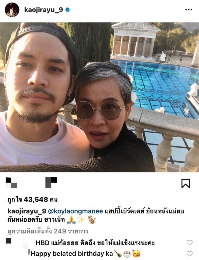 ถึงจะผ่านวันเกิดของคุณแม่ก้อย วรณัชชา มาแล้วเพียงไม่กี่วัน แต่เก้า จิรายุ ก็ไม่ปล่อยให้ผ่านเลยไปง่ายๆ ล่าสุดเจ้าตัวได้โพสต์รูปคู่กับคุณแม่สุดที่รักพร้อมแคปชันชวนยิ้ม @kaojirayu_9 @koylaongmanee แฮปปี้เบิร์ดเดย์ ย้อนหลังแม่ผมกันหน่อยครับ ชาวเน็ท 🙏✨ 🐒 งานนี้ ทั้งเหล่าคนบันเทิงและชาวโซเชียลได้ส่งคำอวยพรวันเกิดถึงคุณแม่ก้อย กันรัวๆกดเลิฟกันกันกระจาย ทำเอา แม่ก้อย ถึงกับแอบกระซิบในความน่ารักของลูกชายมาว่า ในทุกวันที่มีเก้าไม่ว่าวันไหนแม่ก็มีความสุขและเป็นวันที่สำคัญของแม่ทุกวันอยู่แล้ว
