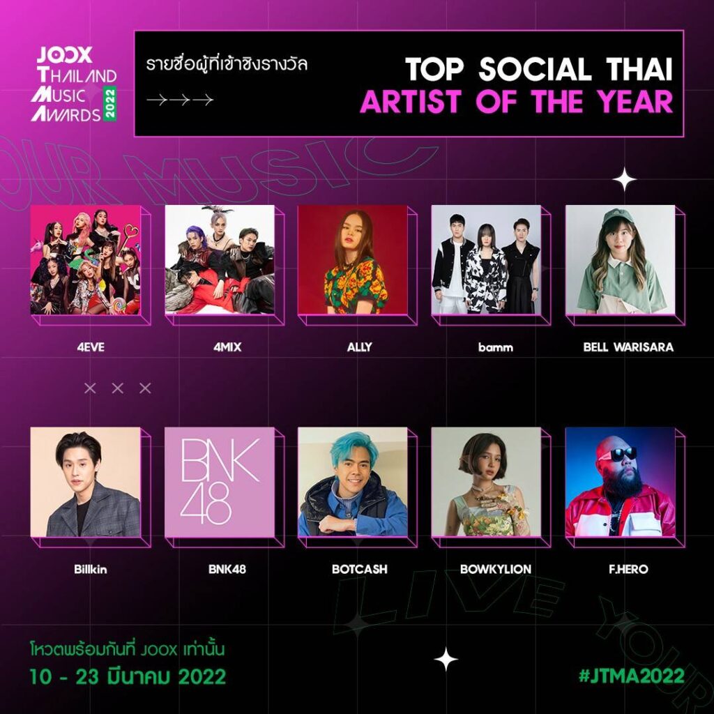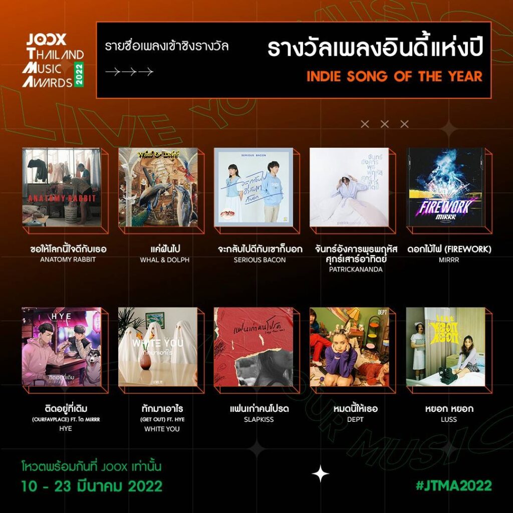 รายชื่อศิลปิน และเพลงที่ได้รับการเสนอเข้าชิงรางวัล JTMA 2022