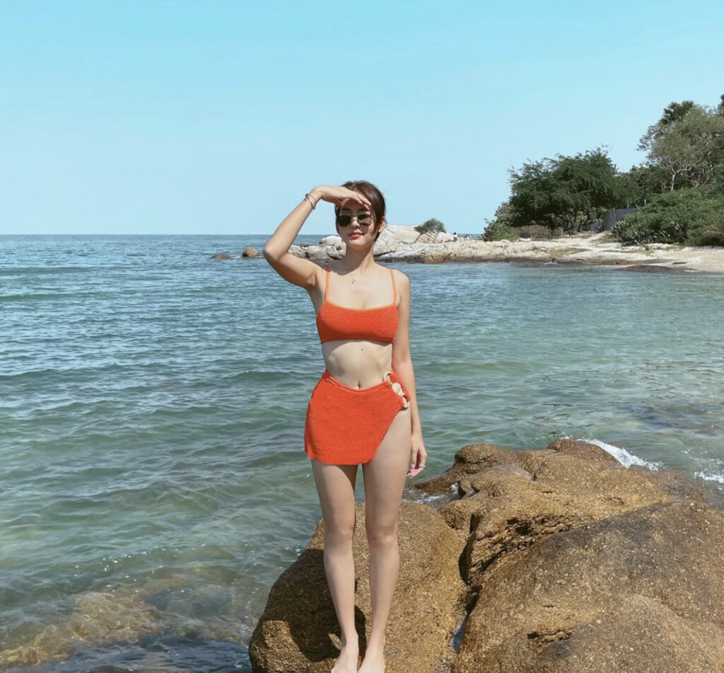 ล่าสุดมาปล่อยอีกเซตที่รอบนี้ไม่หันแค่หลังแล้ว เมื่อเจ้าตัวหันหน้ามาเต็มๆ ซึ่งมาในลุคบิกินี่สีส้มแสบตา อวดอกอึ๋มเบาๆ โชว์สัดส่วนหุ่นที่เป๊ะปัง เรียวขายาว หน้าท้องแบนราบ ผิวขาวสว่างท้าแสงแดด ยืนโพส นั่งโพส รับลมชิวๆ เรียกว่ามีมาไม่ปล่อย งานนี้เลยทำเอาชาวเน็ตแห่ซูมกันสนั่นไอจี