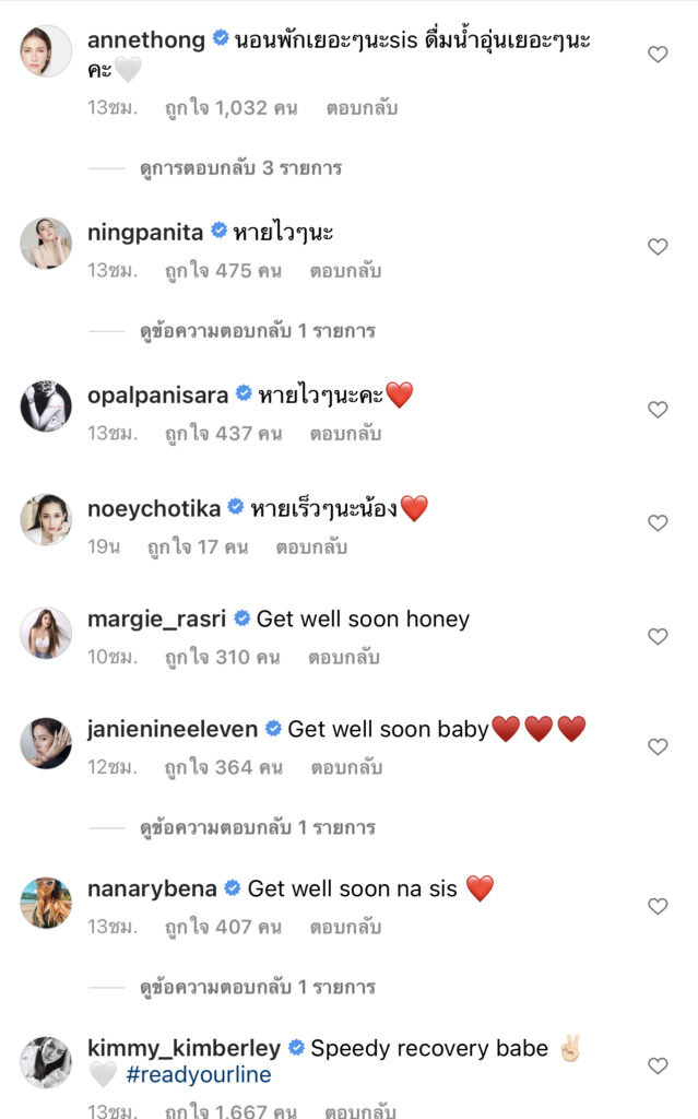 หลังจากญาญ่าได้สัมผัสใกล้ชิดกับผู้ติดเชื้อ COVID-19 ญ่าได้เข้ารับการตรวจหาเชื้อด้วยวิธี RT-PCR ผลตรวจออกมาว่าพบเชื้อ COVID-19 คุณแม่ได้แจ้งทุกๆ ท่านที่เกี่ยวข้องเรียบร้อยแล้ว และต้องขอโทษผู้ที่ได้รับผลกระทบ มา ที่นี้ด้วยนะคะซึ่งงานนี้ก็มีเพื่อนในวงการบันเทิงรวมถึงแฟนคลับเข้ามาส่งกำลังใจให้สาวญาญ่าหายป่วยไวๆกันอย่างล้มหลาม
