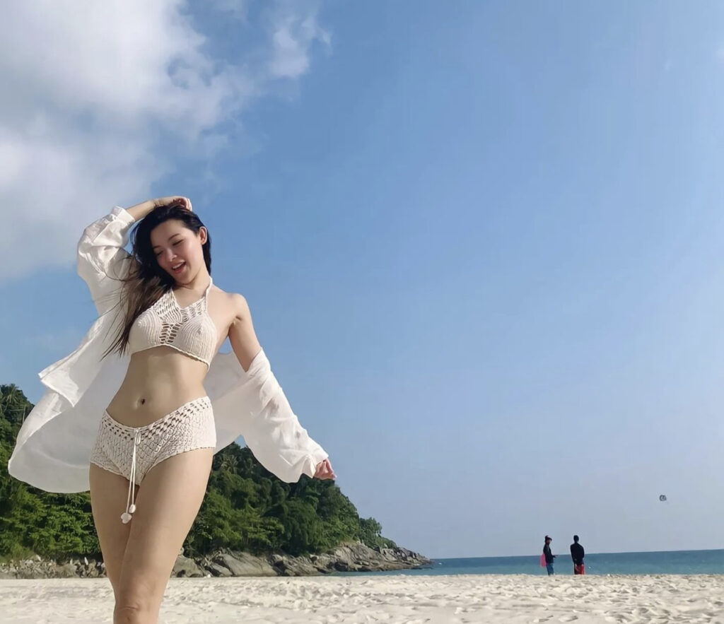 ซึ่งงานนี้บอกเลยว่ามีหนาวสั่นใจระทวยกันเป็นแถว เมื่อสาวต้นหอม ปล่อยทีเด็ดที่เรียกว่านานทีปีหน โดยการนุ่งบิกินี่สีขาวแจกความสดใส ผิวขาวออร่าสว่างยิ่งกว่าหลอดไฟอวดหน้าท้องมีน้ำมีนวลเบาๆแต่แซ่บทะลุไอจี ยืนโพสท่าซิกๆน่ารัก รับลมทะเลกลางชายหาด บอกเลยว่าทั้งแซ่บ ทั้งน่ารัก การันตีความเป๊ะปัง