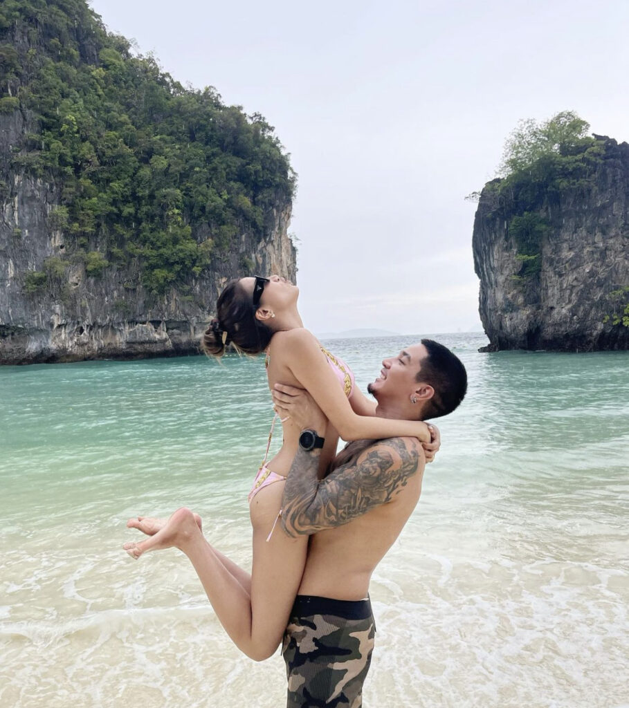 นอกจากจะปล่อยความเซ็กซี่ที่ว่าแรงแล้ว สาวใบเตยยังได้ปล่อยซีนหวานคู่ดีเจแมนอีกด้วย ซี่งสาวใบเตยมาในลุคนุ่งบิกินี่ตัวจิ๋ว อวดอึ๋มสุดพลัง บอดี้สัดส่วนที่เป๊ะ ส่วนทางด้านดีเจแมนมาในลุคถอดเสื้อ โชว์ซิกแพคอวดรอยสัก โพสท่าชิวๆน่ารักอุ้มสาวใบเตย แจกรอยยิ้มสดใส บอกเลยว่าทั้งหวานทั้งแซ่บ ซึ่งพอแฟนคลับเห็นซีนหวานแบบนี้ก็ไม่พลาดเข้ามาคอมเมนต์แซวว่าลูกสองต้องมาแล้วแหละ