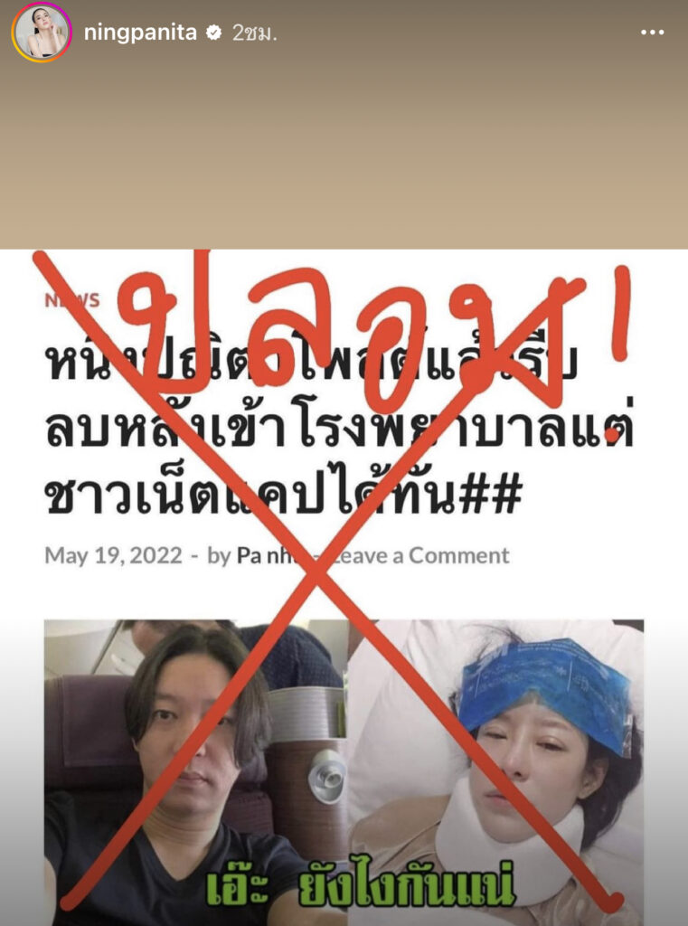 เฟคนิวส์!”หนิง ปณิตา“โต้ป่วยแอทมิทด่วนลั่นเป็นข่าวปลอม ไม่รู้จุดประสงค์ที่ทำ วอนอย่าหลงเชื่อ ยันสบายดี