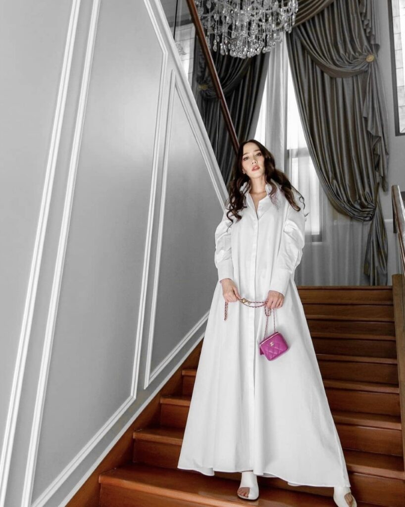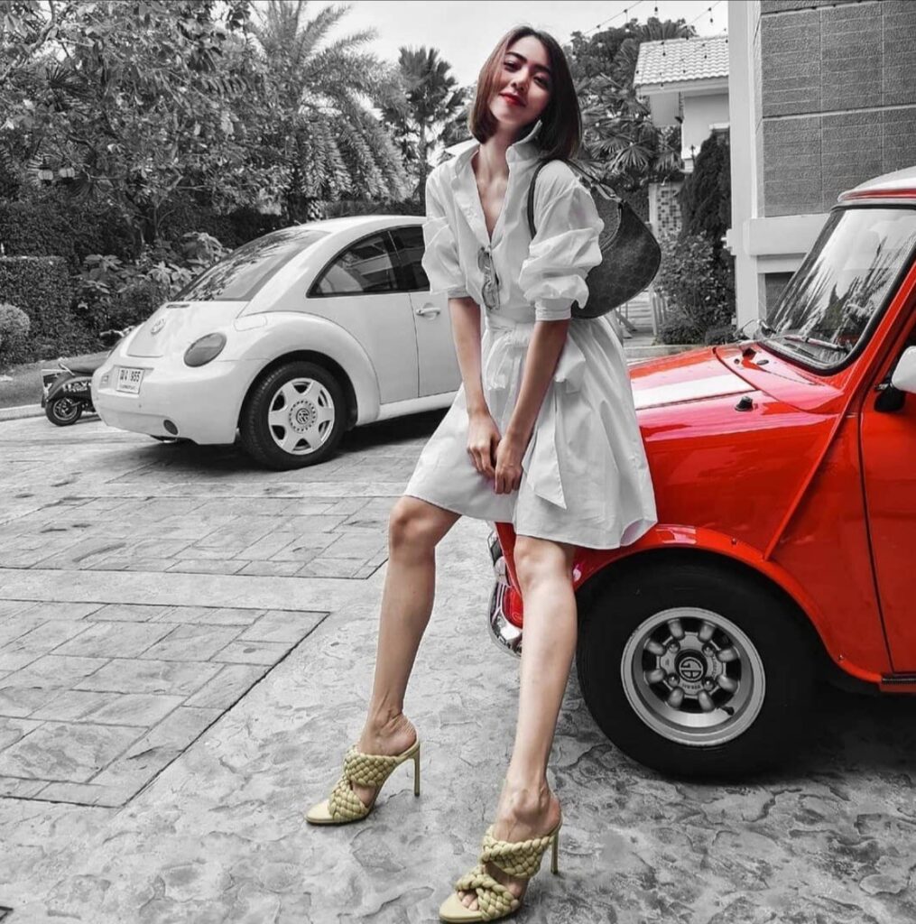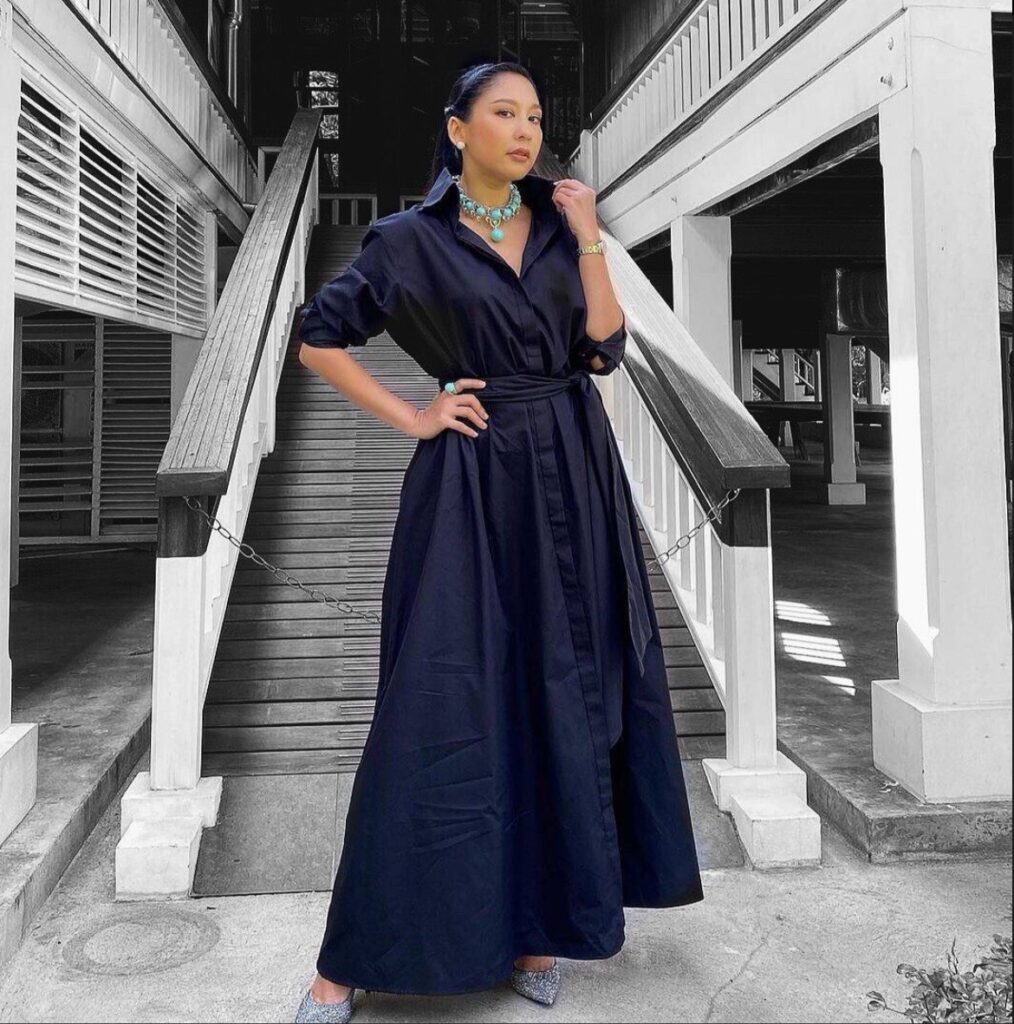 ส่วน เก๋-ชลลดา ที่แม้จะอยู่บ้านแต่ก็ไม่ยอมหยุดสวย เลือกใส่ The Dress Shirt no.5 แม้จะเป็นเดรสเชิ้ต แต่ก็มีดีเทลของแขนที่ช่วยให้มีความแคชชวล แต่ดูดีมีอะไรมากยิ่งขึ้น
