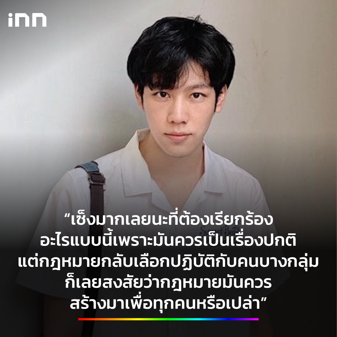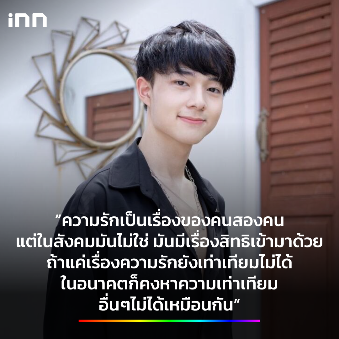 “ผมรู้สึกว่าไทยควรมีกฎหมายนี้ได้แล้ว จะได้คุ้มครองสิทธิขั้นพื้นฐาน ที่ผมเชื่อว่ามนุษย์ทุกคนควรได้รับเท่าเทียมกัน ไม่จำกัดว่าเป็นเพศไหน เพราะความรักเป็นความรู้สึก ความรู้สึกมันเกิดขึ้นได้กับทุกคน ไม่เลือกเพศสภาพ”