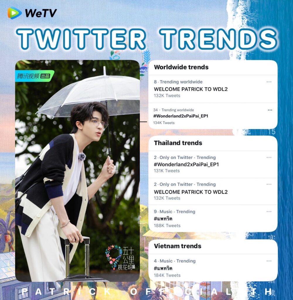 ซึ่งหลังจาก Wonderland Season 2 EP.1 ได้ออกอากาศไป บรรดาแฟนคลับ รวมไปถึงเจ้าปลาดาว (ชื่อแฟนคลับ) ก็ได้เข้ามาทวิตข้อความพร้อมติดแฮชแท็ก WELCOME PATRICK TO WDL2 และ #Wonderland2xPaiPai_EP1 ชมถึงความน่ารัก รวมถึงให้กำลังใจกับวาไรตี้แรกของ “แพทริค” จนขึ้นเทรนทวิตเตอร์ทั้งไทย, เวียดนาม และโลก แถมยังขึ้น Hot Search หลักใน Weibo อันดับ 32 และติดชาร์จการจัดอันดับรายการวาไรตี้ทั้งใน Weibo, WeTV และ Tencent Video อีกด้วย เรียกว่าแค่เปิดมาตอนแรก กระแสตอบรับจากแฟนๆ ก็ดีเกินคาดซะแล้ว
