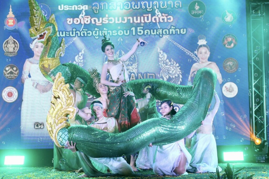 โดยเปิดตัวสาวงามทั้ง12คนให้ออกมาแนะนำตัว พร้อมโชว์ความสามารถพิเศษ คัดเลือกเหลือเพียง7 คนเท่านั้นในรอบตอบคำถาม และที่ทำเอาทุกคนขนลุก เมื่อผู้บริหาร “ธัญญ่า-ลาล่า” ได้จัดเต็มการแสดงโชว์สุดพิเศษร่ายรำถวายให้กับปู่พญานาค