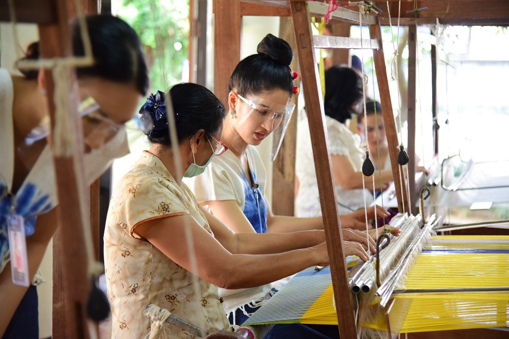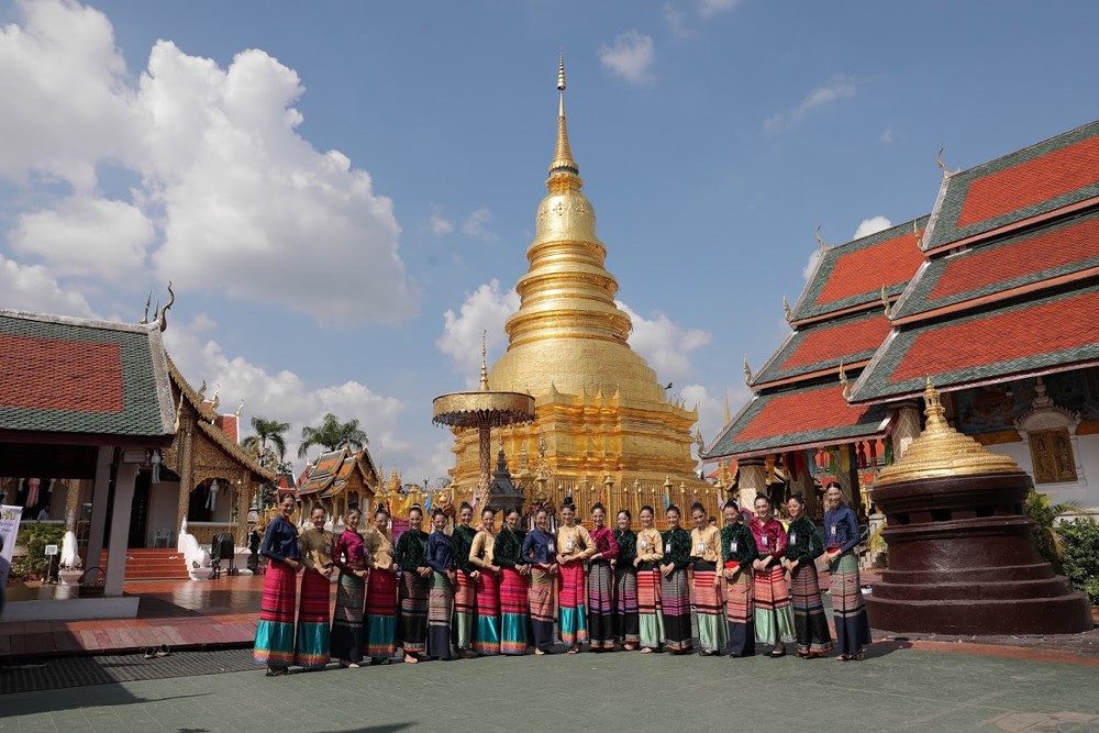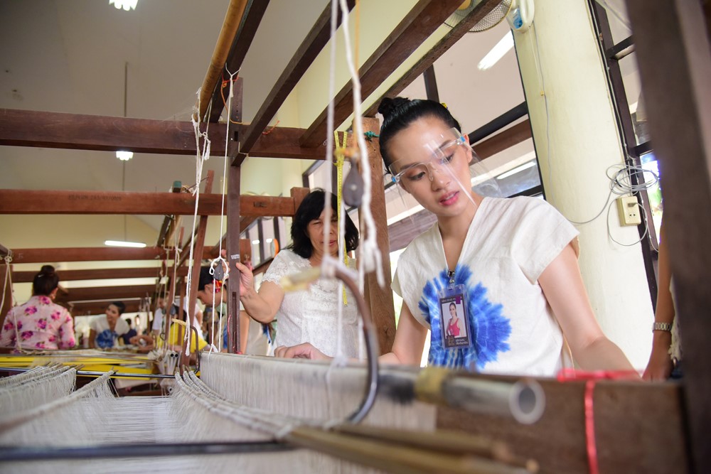 ช่วงบ่ายผู้เข้าประกวดนางสาวไทยได้เรียนรู้ภูมิปัญญาในการทอผ้าไหมยกดอกลำพูน มกดกทางหัตถกรรมชั้นสูงที่ถ่ายทอดสืบกันมายาวนาน ณ สถาบันผ้าทอเมืองหริภุญชัย เดินทางต่อไปยังบ้านดอนหลวง ต.เเม่เเรง อ.ป่าซาง เรียนรู้พร้อมลงมือทำ D.I.Y ผ้าบาติกมัดย้อมป่าซาง ต่อด้วยสัมผัสวิถีของชาวยอง บ้านหนองเงือก ชม “คะตึก” หรือหอพระไตรปิฎก สถาปัตกรรมเเบบมอญผสมศิลปะพื้นเมืองที่มีจิตรกรรมฝาผนังเก่าเเก่เเละยังเยี่ยมชมงานหัตถกรรมทอผ้าที่สืบสานภูมิปัญญาการตำหูก มากว่า 100 ปี ที่กลุ่มผ้าฝ้ายทอมือบ้านหนองเงือก เเละ พิพิธภัณฑ์ไทยองบ้านหนองเงือก ก่อนกลับเข้ามี่พักเเละเตรียมตัวในกิจกรรมวันต่อไป