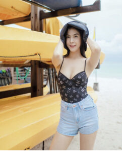 ล่าสุดเจ้าตัวก็ทำให้หนุ่มน้อยหนุ่มใจต้องใจสั่นกันเป็นแถวเมื่อเจ้าตัวใส่ชุดว่ายน้ำท่อนบนเป็นสายเดี่ยวสีชมพู่เปลือกหอยเห็นเนินอกเบาๆมาพร้อมกับกางเกงขายาวสีขาว ถึงแม้ว่ากางเกงจะเรียบร้อยแต่ความเซ็กซี่ก็ไม่ทำให้ลดลงเลยนะจ้า เพราะแค่เสื้อท่อนบนก็เซ็กซี่เกินต้านแล้วใช่ไหมค่ะซิส