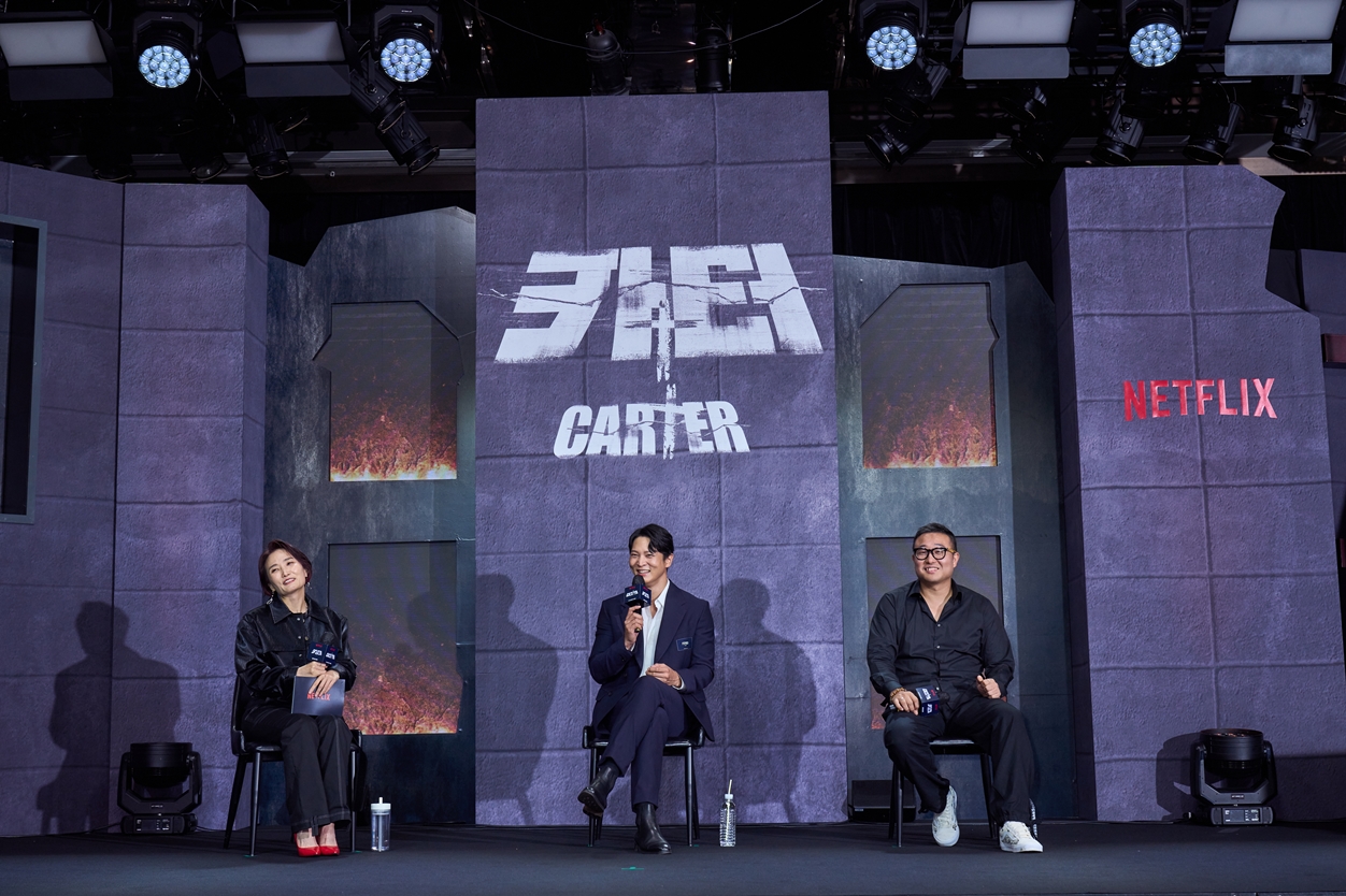 คาร์เตอร์ (Carter) ภาพยนตร์เรียลไทม์แอคชั่นโดย Netflix ซึ่งกำลังจะพรีเมียร์ในวันที่ 5 สิงหาคมนี้ จัดงานแถลงข่าวเผยเบื้องลึกเบื้องหลังของภาพยนตร์สุดเดือดที่เตรียมสูบฉีดอะดรีนาลีนผู้ชมทั่วโลก โดยมีจูวอนและผู้กำกับจองบยองกิลมาร่วมพูดคุยถึงฉากแอคชั่นที่บู๊ระห่ำแบบ Non-Stop จนลืมหายใจ!