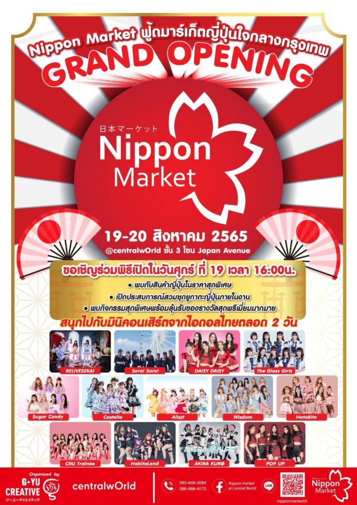 ติดตามข่าวสารและกิจกรรมเพิ่มเติมได้ที่ WWW.NIPPONMARKETSHOP.COM / FACEBOOK : NIPPON MARKET AT CENTRAL WORLD / LINE OFFICIAL : @NIPPONMARKETTH / INSTRAGRAM : NIPPONMARKET_OFFICIAL