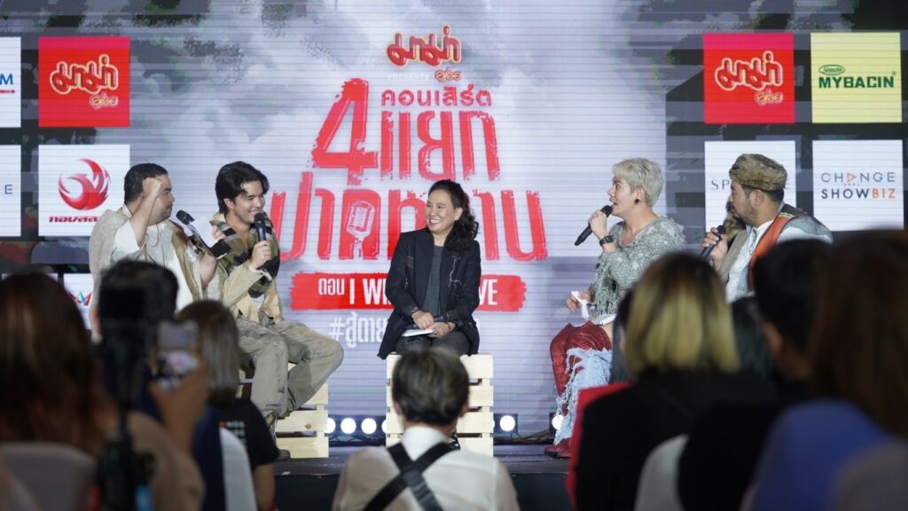 แค่น้ำจิ้มในงานแถลงข่าวยังทำเอาขำเหนื่อยกันขนาดนี้ แล้ววันจริงจะขนาดไหนเมื่อ คุณฉอด สายทิพย์ มนตรีกุล ณ อยุธยา ประธานเจ้าหน้าที่บริหาร Chief Executive Officer (CEO) ร่วมกับ คุณเอส วรฤทธิ์ ไวยเจียรนัย รองกรรมการผู้อำนวยการ บริษัท CHANGE2561 ได้ปลุกชีพ สี่จตุรเทพสายฮา “อ๊อฟ ปองศักดิ์ – ป๊อบ ปองกูล – ว่าน ธนกฤต และ โอ๊ต ปราโมทย์ กลับมาคืนสังเวียนคอนเสิร์ต “4 แยกปากหวาน ตอน I will survive #สู้ตายเราต้องรอด” อีกครั้ง หลังจากทิ้งทวนห่างความฮามากว่า 3 ปี กลับมาครั้งนี้ “4 แยกปากหวาน” ขอทวงคืนพื้นที่ความสนุกมาไว้ใน คอนเสิร์ต “4 แยกปากหวาน ตอน I will survive #สู้ตายเราต้องรอด” ที่พวกเขาจะมาสร้างความบันเทิงแบบครบรส ทั้ง ร้อง เล่น เต้น กัด จัดหนักทุกซีน เรียกได้ว่ายกระดับมาตรการความฮาขั้นสูงสุดการันตีว่าเวทีมีสะเทือนแน่นอน