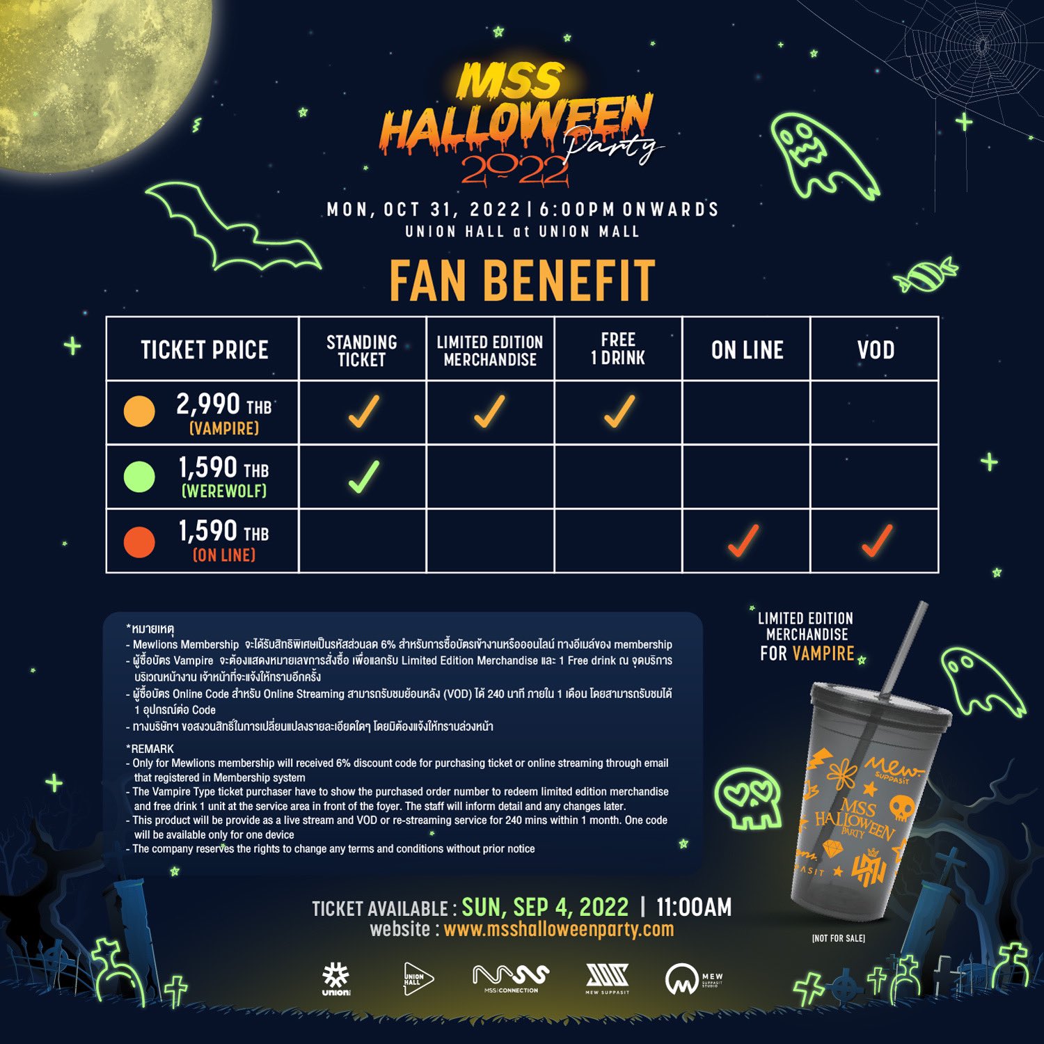 ยิ่งไปกว่านั้น ความพิเศษของงานนี้ยังเปิดโอกาสให้แฟนๆที่เข้าร่วมงานทุกคนได้แต่งตัวเป็นผีรับคอนเซปต์วันฮาโลวีนที่จะจัดด้วย นอกจากนี้ยังมีการประกวด Miss MSS Halloween 2022 ใครโดดเด่นที่สุดรับรางวัลจากหนุ่ม มิว ศุภศิษฏ์ ไปเลย แอบบอกก่อนว่ารางวัลนี้ไม่เคยมีใครได้มาก่อนด้วยนะ