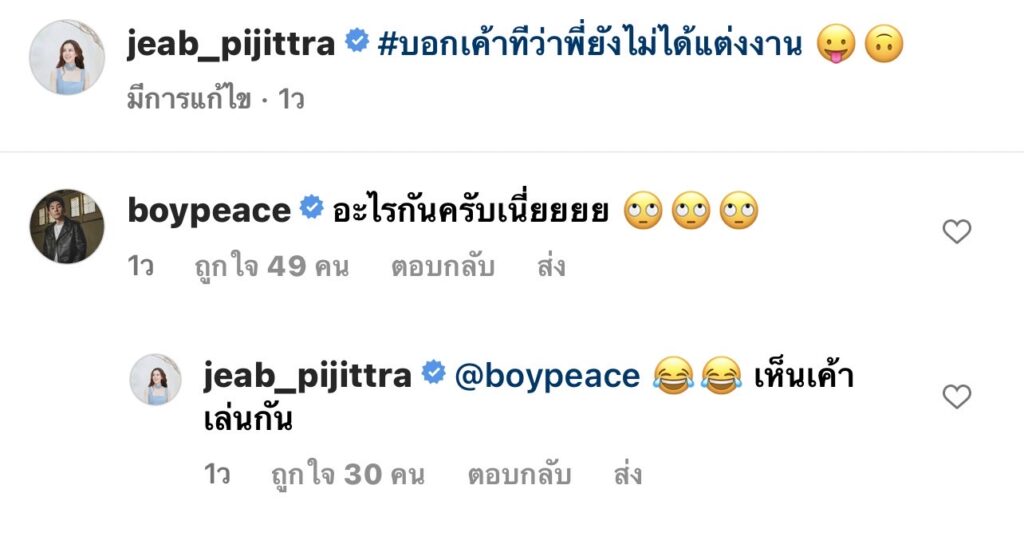 บอกเลยว่างานนี้ หนุ่มบอย ขอไม่ปล่อยผ่านรีบเข้ามาคอมเมนต์ทันที “อะไรกันเนี่ย” พร้อมส่งอิโมจิมองบนมารัวๆ ส่วนภรรยาคนดีก็รีบตอบทันควัน “เห็นเขาเล่นกัน” ขำๆนะจ๊ะ