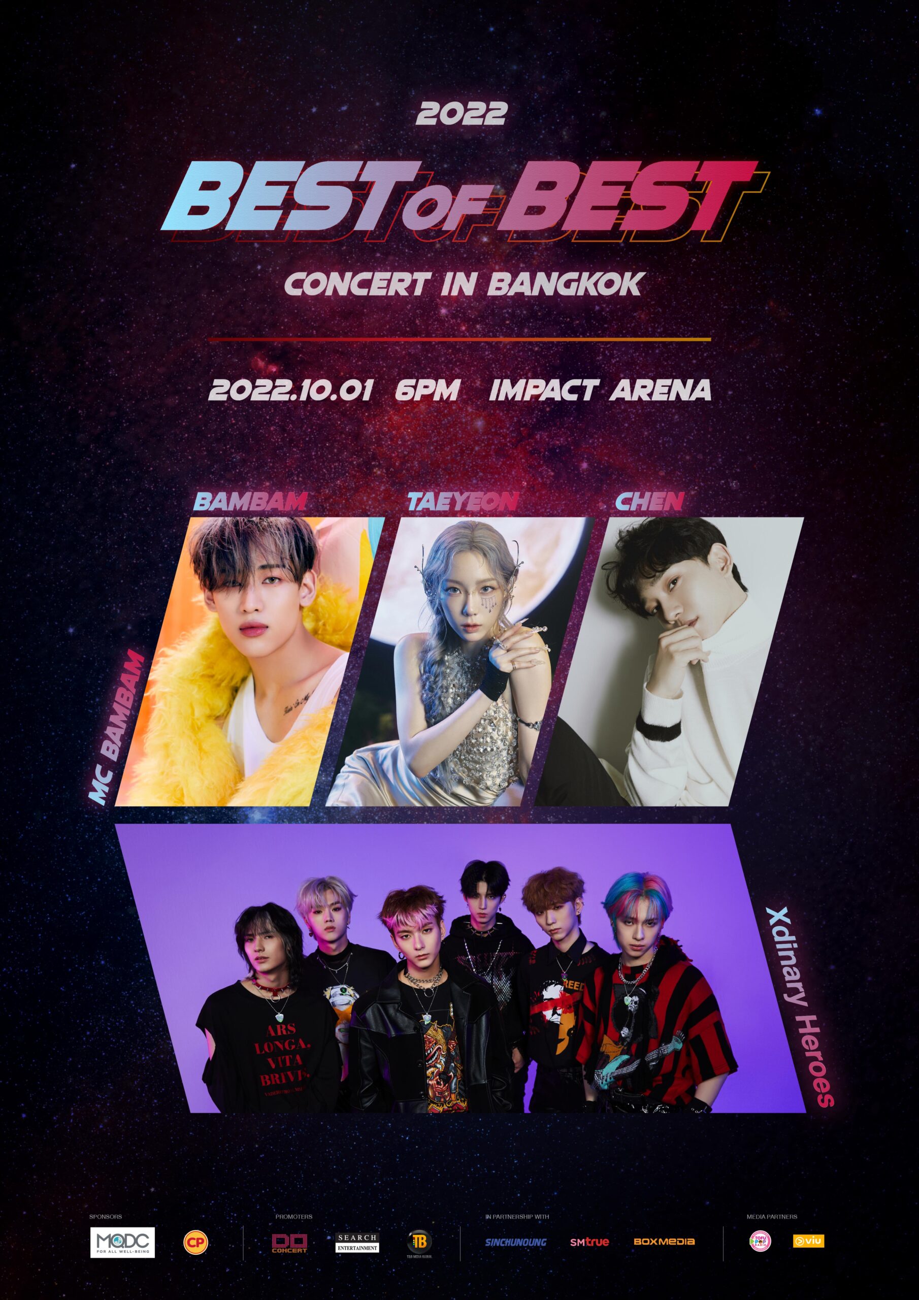 อดใจรอกันไม่ไหวแล้วหลังจากแฟนๆ ได้เห็นไลน์อัพศิลปินที่จะมาเข้าร่วมคอนเสิร์ต 2022 BEST OF BEST CONCERT IN BANGKOK ไม่ว่าจะเป็นโวคอล ควีน แทยอน (TAEYEON) Girls’ Generation, เมนโวคอลเสียงทรงพลัง CHEN EXO, ไอดอลขวัญใจชาวไทย แบมแบม GOT7 โดยนอกจากเตรียมโชว์มาฝากชาวอากาเซ่แล้ว แบมแบม ยังรับหน้าที่เป็น MC อีกด้วย และ ไอดอลแบนด์น้องใหม่จาก JYP อย่าง Xdinary Heroes ซึ่งถือเป็นครั้งแรกของหนุ่มๆ ที่ได้มาเยือนเมืองไทย เรียกได้ว่าเป็นการรวมตัวพ่อ ตัวแม่ที่จะยกทัพมาจัดเต็มความสนุก คุ้มค่าทุกโซนบัตร