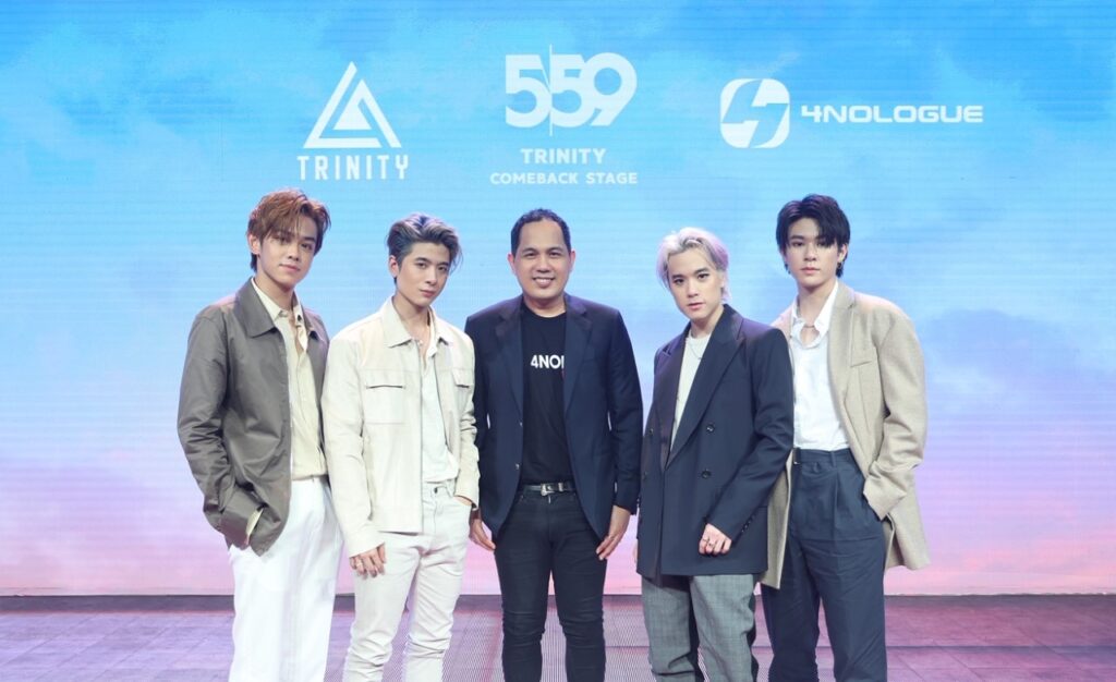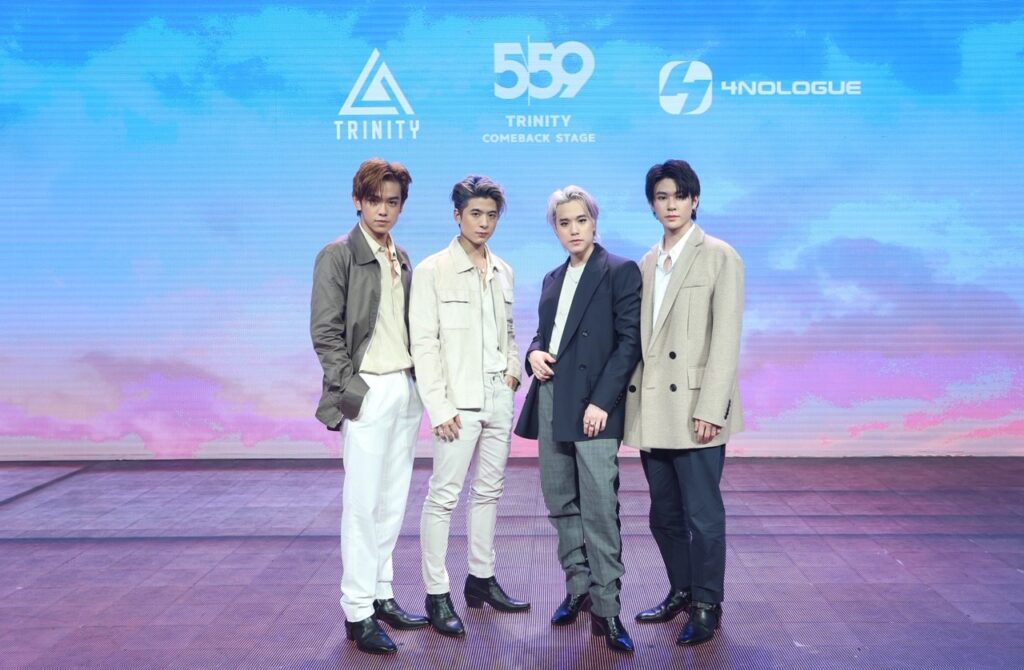 ได้เวลา TRINITY Comeback Stage ของ 4 หนุ่ม TRINITY (ทรินิตี้) “เจมส์-ธีรดนย์,เติร์ด-ลภัส,ปอร์เช่-ศิวกร,แจ๊คกี้-จักริน” ศิลปินในสังกัด 4NOLOGUE (โฟร์โนล็อค) เจ้าของฉายา “บอยกรุ๊ปแห่งชาติ” ที่กลับมาพร้อมกับ SPECIAL TRACK เพลง “5:59 (Five – Fifty Nine)” เพลงครบรอบ 1 ปีในการเดบิวต์ของทั้ง 4 หนุ่ม