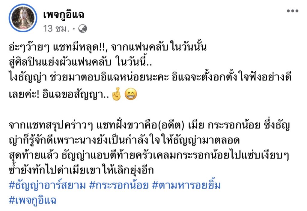 มาละโว้ย!เพจดังแฉนักร้องสาว”ธัญญ่า อาร์สยาม”จากแฟนคลับวันนั้น สู่ศิลปินแย่งผัวแฟนคลับในวันนี้ ชาวเน็ตแห่คอมเมนต์สนั่น