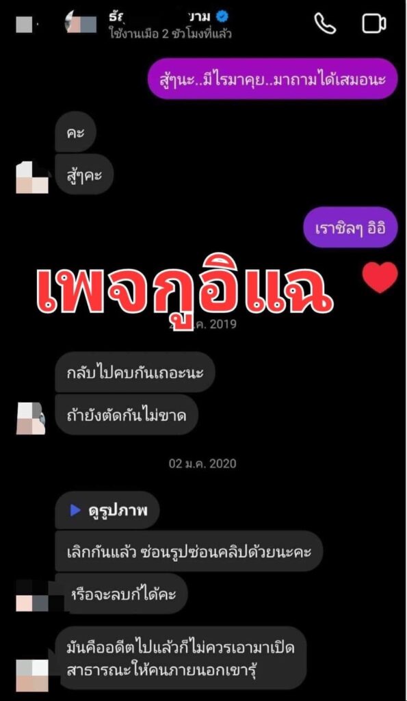 ล่าสุดดูเหมือนเรื่องไม่จบง่าย เมื่อมีเพจดังออกมาแชร์สาว”ธัญญ่า”ว่าเจ้าตัวก็เคยแย่งแฟนคนอื่นมาเหมือนกัน โดยได้อออกมาโพสต์ภาพแชท พร้อมแคปชั่นว่า “อ่ะๆว๊ายๆ แชทมีหลุด!!, จากแฟนคลับในวันนั้น สู่ศิลปินแย่งผัวแฟนคลับ ในวันนี้..