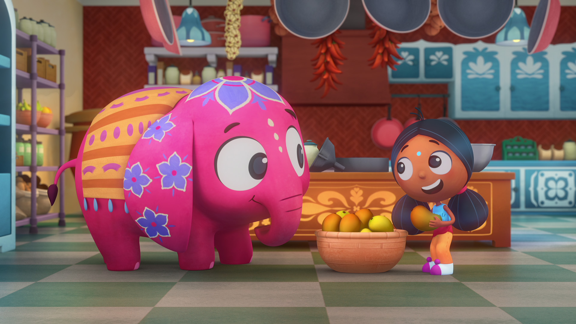 สาวน้อยร่าเริงพร้อมเพื่อนช้างที่เปลี่ยนสีได้ ร้องเล่นเต้นรำไปกับเสียงดนตรี กิจกรรมสนุกๆ และวีรกรรมสุดป่วน ณ โรงแรมมะม่วงของครอบครัวเชื้อสายอินเดียของเธอ