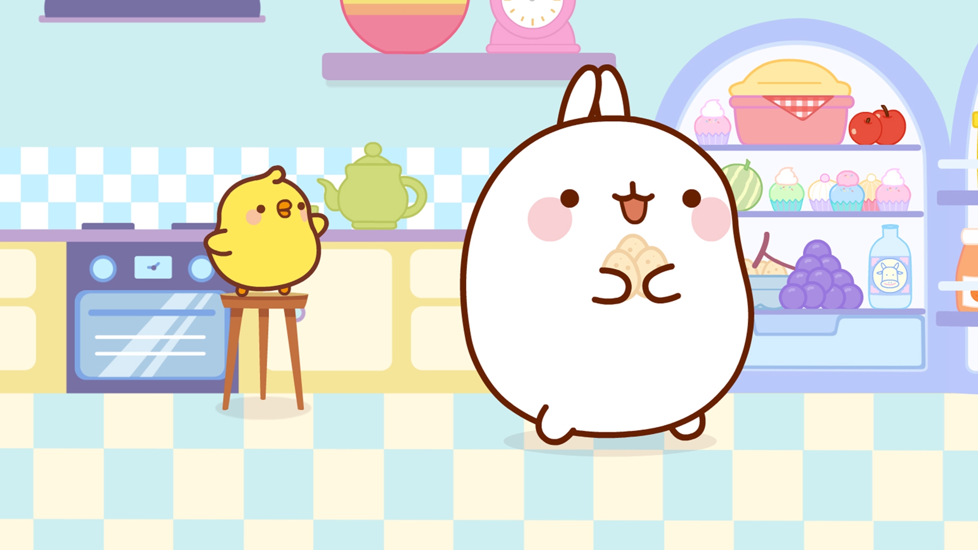 กระต่ายใจดีช่างคิดช่างฝัน และลูกเจ๊ยบเพื่อนรักจอมขี้เล่นจะพาทุกคนมาพบกับความสุขเล็กๆ ที่เกิดขึ้นได้ทุกวันในโลกสีสันสดใส