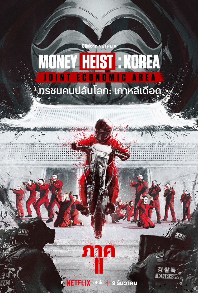 สิ้นสุดการรอคอย เมื่อซีรีส์ ทรชนคนปล้นโลก: เกาหลีเดือด ภาค 2 (Money Heist: Korea – Joint Economic Area Part 2) ประกาศวันพรีเมียร์พร้อมกันทั่วโลก 9 ธันวาคมนี้ หลังภาค 1 ที่ได้พรีเมียร์ไปเมื่อวันที่ 24 มิถุนายนที่ผ่านมาได้ทะยานขึ้นอันดับ 1 บน Top 10 หมวดรายการทีวีภาษาต่างประเทศทั่วโลก ของ Netflix หลังเปิดตัวด้วยยอดการรับชมสูงถึง 33.7 ล้านชั่วโมง