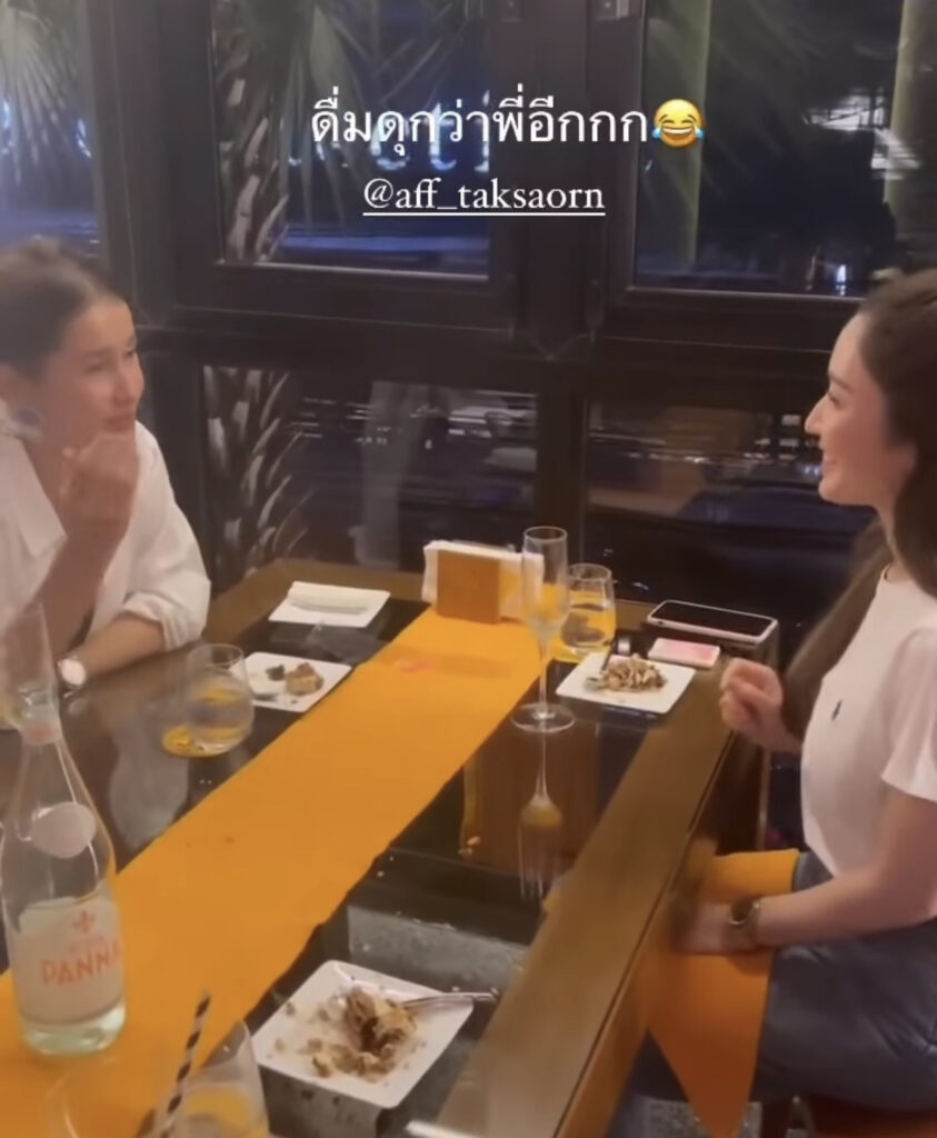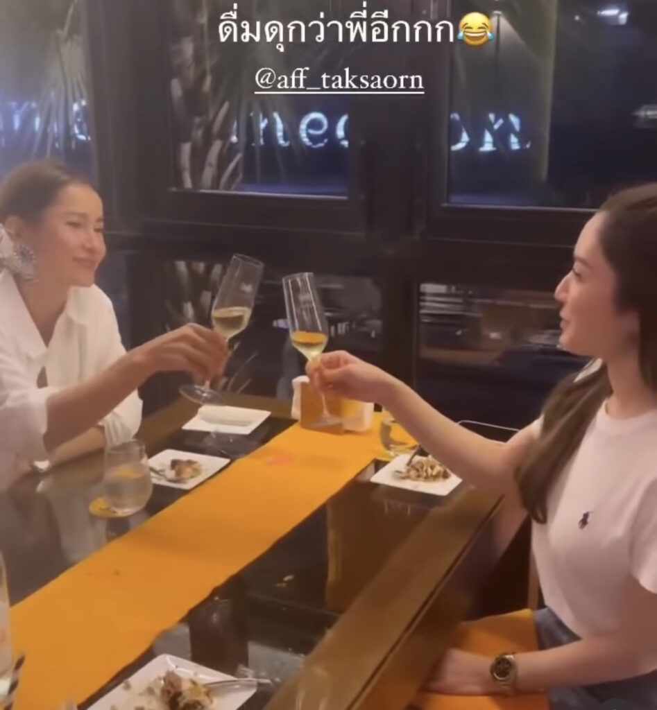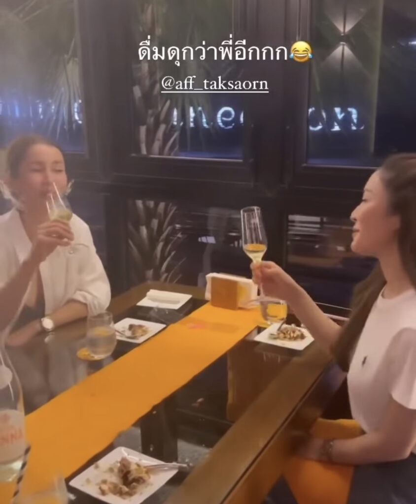 เรียกว่าเป็นโมเมนต์ที่น่ารักดีต่อใจ เมื่อนักแสดงสาว”แอน ทองประสม”ได้จัดงานฉลองวันเกิดให้สาว”แอฟ ทักษอร”แบบเรียบง่าย และได้ดื่มแชมเปญกัน เปผ้นโมเมนต์ที่หาดูยากมากๆเพราะทุกคนไม่คิดว่าสาวแอฟจะดื่มแชมเปญเพราะด้วยบุคลิกภาพที่เรียบร้อย อ่อนโยน ล่าสุดได้มีโอกาสเจอสาว แอน เจ้าตัวก็ออกมาปล่อยไก่ว่า”เผยทางด้าน”แอฟ ทักษร” ดื่มแชมเปญเก่งคือจริงๆเรามาสนิทกันมากขึ้นตอนอยู่ในกอง เราก็เลี้ยงวันเกิดให้เขา แล้วบอกว่าวันนี้มันเป็นงานฉลอง เราเลยจะสั่งแชมเปญมาคนละแก้วเพื่มความอรรถรสเฉยๆ เราไม่ได้ตั้งใจจะมาเป็นลำยองกันนะ แต่ปรากฎแอฟเขากินได้ แล้วบอกว่าขอเป็นขวดก็ได้ค่ะ เราเลยยกให้เขาเป็นลำยองภาค2 คือหน้าเขายังสบายๆอยู่ แต่เราเมาไปแล้ว เรียกว่าเซอร์ไพรส์เหมือนกัน พอคลิปออกไป มีคนมาแซวเขาก็บิดตัวไปบิดตัวมาคงเขินแหละแต่น่ารักดี”