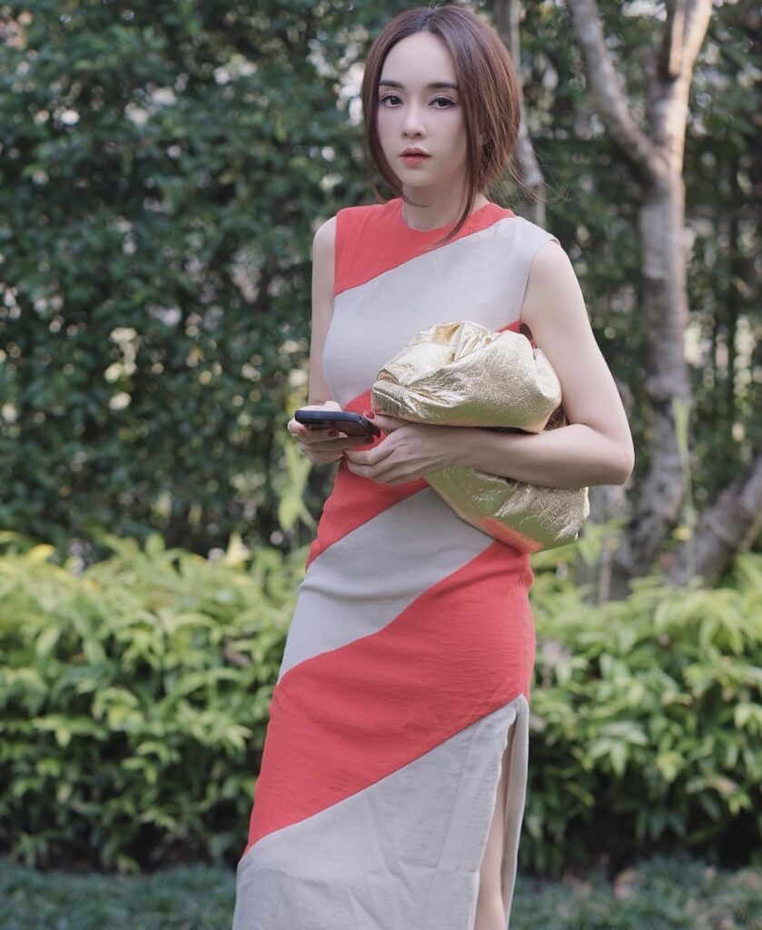 แต่ที่ทำเอาสะดุดคงจะเป็นสีปากแรงฤทธิ์และสีเล็บสีแดง เรียกว่าถึงจะมาชุดเบาๆหวานๆหน่อยแต่ก็ไม่ทิ้งความแซ่บเลยนะจ้าสาวเป้ย