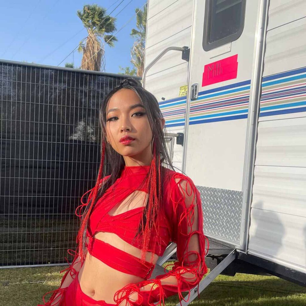 เธอกลายเป็นไวรัลที่เทศกาล Coachella ในปีนี้ด้วยการท้าทายแบบแผนไทยและรัฐบาล รวมถึงการรับประทานข้าวเหนียวมะม่วงซึ่งเป็นขนมไทยดั้งเดิมบนเวที เมื่อปีที่แล้วเธอถูกตั้งข้อหาหมิ่นประมาทจากการวิพากษ์วิจารณ์มาตรการรับมือโควิด-19 ของรัฐบาลไทย ส่งผลให้แฮชแท็ก #SaveMilli ติดเทรนด์”