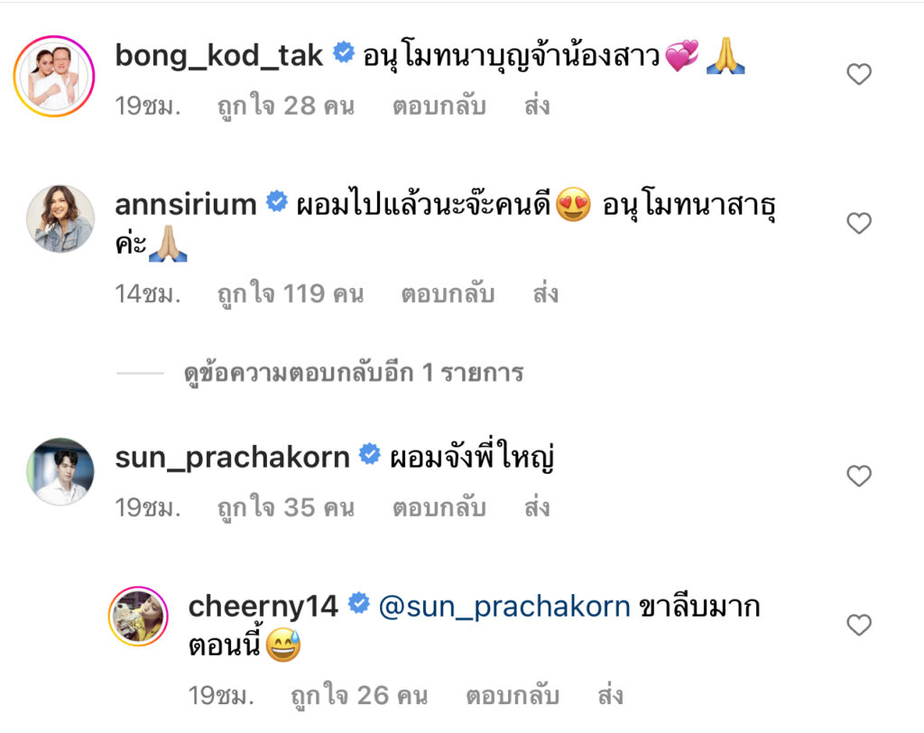 ล่าสุด สาวเชียร์ได้ออกมาโพสต์ภาพทำบุญปล่อยปลาลงในไอจีส่วนตัวพร้อมแคปชั่นว่า”ดูแลตัวเองให้รอดปลอดภัยกันทุกตัวเลยนะ”ซึ่งงานนี้ก็มีเหล่าชาวเน็ตเข้ามาร่วมอนุโมทนาบุญกับสาวเชียร์กันอย่างมากมายนอกจากนี้ยังมีชาวเน็ตบางคนเข้ามาคอมเมนต์แห่เป็นห่วงสาวเชียร์ เนื่องจากภาพที่เจ้าตัวลงดูสูบผอมเกินไป อยากให้สาวเชียร์ดูแลตัวเองด้วย แต่ทั้งนี้ทั้งนั้นจะเป็นแค่มุมกล้อง หรือว่าเจ้าตัวผอมจริง ก็ต้องรอสาวเชียร์ออกมาพูดเองนะคะ