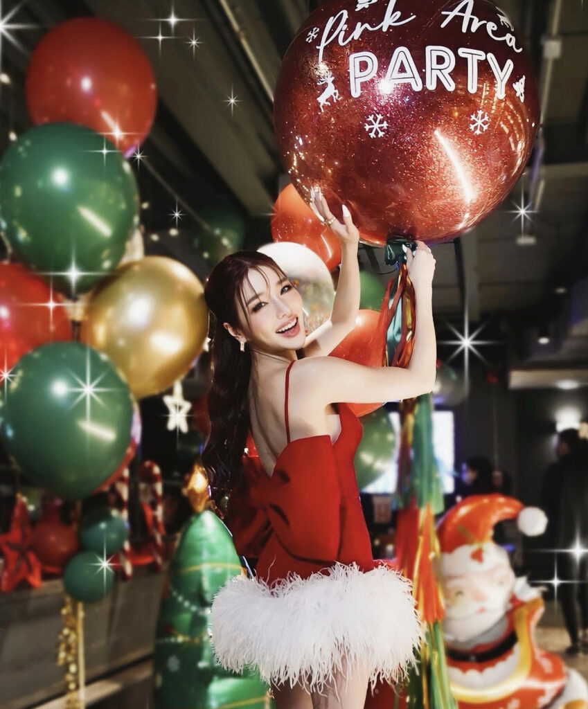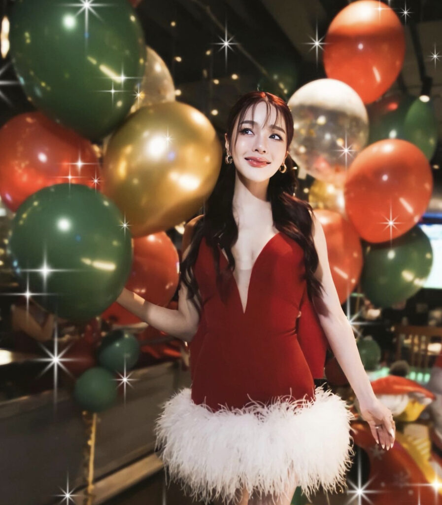 เช่นเดียวกับนักแสดงสาวสวย”แอร์ ภัณฑิลา”ที่ขอเล่นจัดใหญ่ จัดเต็ม ใส่ชุดเดรสแซนตี้ผู้แสนน่ารัก แอบเซ็กซี่เบาๆแหวกอกตรงกลาง อวดความเผ็ดฉ่าเบาๆ ดีไซน์เก๋ไก๋โบว์ใหญ่อลังกาลด้านหลัง จัดแบล็คกาวน์ด้วยลูกโป่งหลากหลายสี ทั้งน่ารัก ทั้งสดใส ยืนหนึ่งเทศกาลศริสต์มาสไปเลยค่ะ