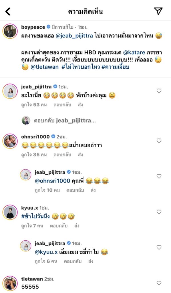 @boypeace ผลงานของเธอ @jeab_pijittra ไปเอาความมั่นมาจากไหน 😅 ผลงานล่าสุดของ ภรรยาผม HBD คุณกระแต @katare ภรรยา คุณเติ้ลตะวัน ผิดวัน!!! เจี๊ยบบบบบบบบบบบบบ!!! เห้ออออ 😓😓 @tletawan #ไม่ไหวบอกไหว #ความเจี๊ยบ