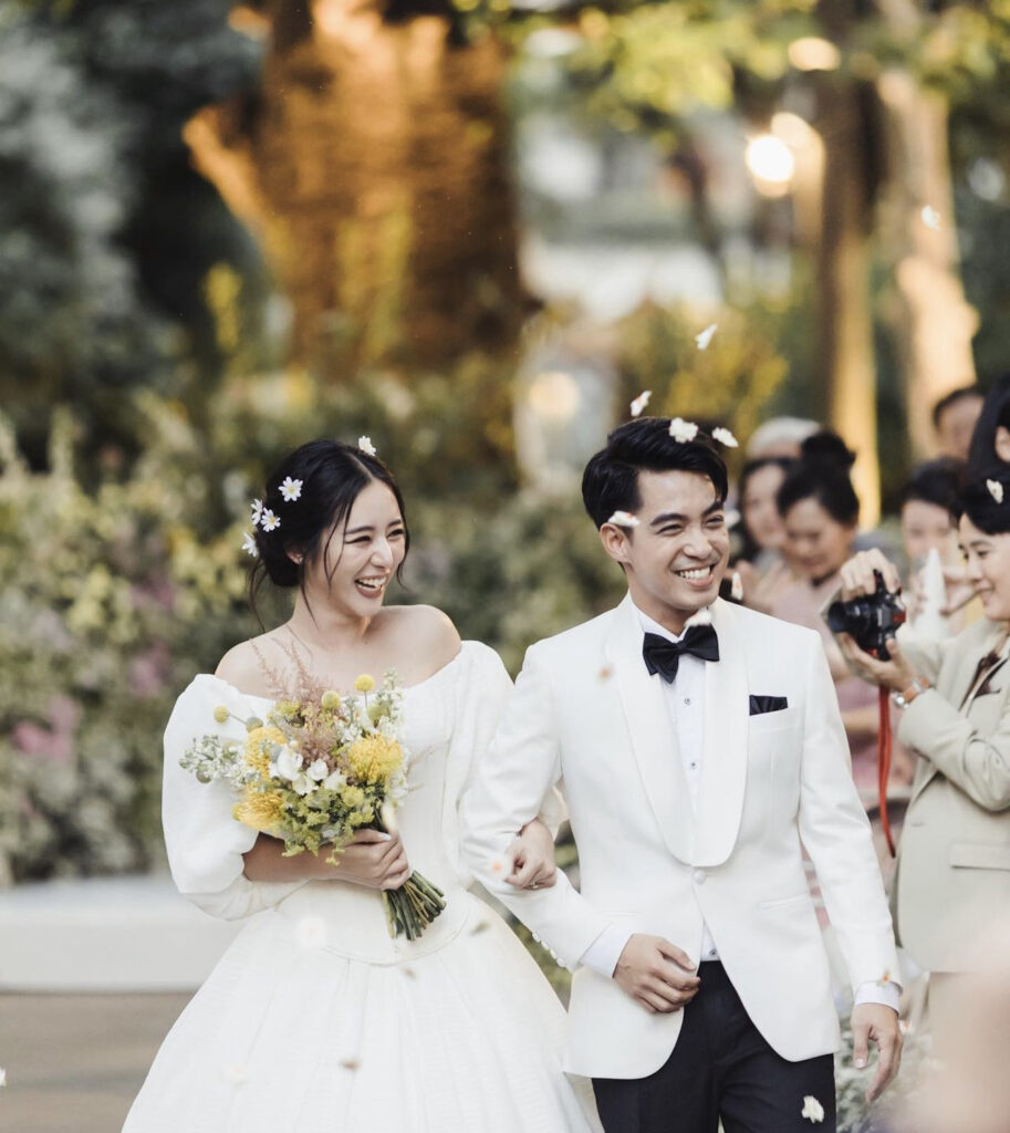 เป็นอีกคู่รักคนบันเทิงที่แฟนคลับเฮหนักมาก สำหรับนักแสดงและพิธีกรสาว “แอร์ ภัณฑิลา” ที่ควงแขนเจ้าบ่าวสุดหล่อดีกรีนักธุรกิจ “ไอซ์ รัชชสิทธิ์” ถือฤกษ์งามยามดีในวันที่ 17 ก.ค.2565 เข้าพิธีวิวาห์ ที่โรงแรมโฟร์ซีซั่นส์ กรุงเทพฯริมแม่น้ำเจ้าพระยา ถ.เจริญกรุง โดยช่วงเช้าเป็นพิธีสมรส เจ้าสาวมาในชุดเจ้าสาวเรียบง่ายสีขาว แต่แฝงไปด้วยความหรูหราสไตล์เจ้าหญิง ด้านเจ้าบ่าวในชุดสูทสากล ซึ่งบรรยากาศถูกเนรมิตให้ออกมาดูสวย หรู และดูแพง