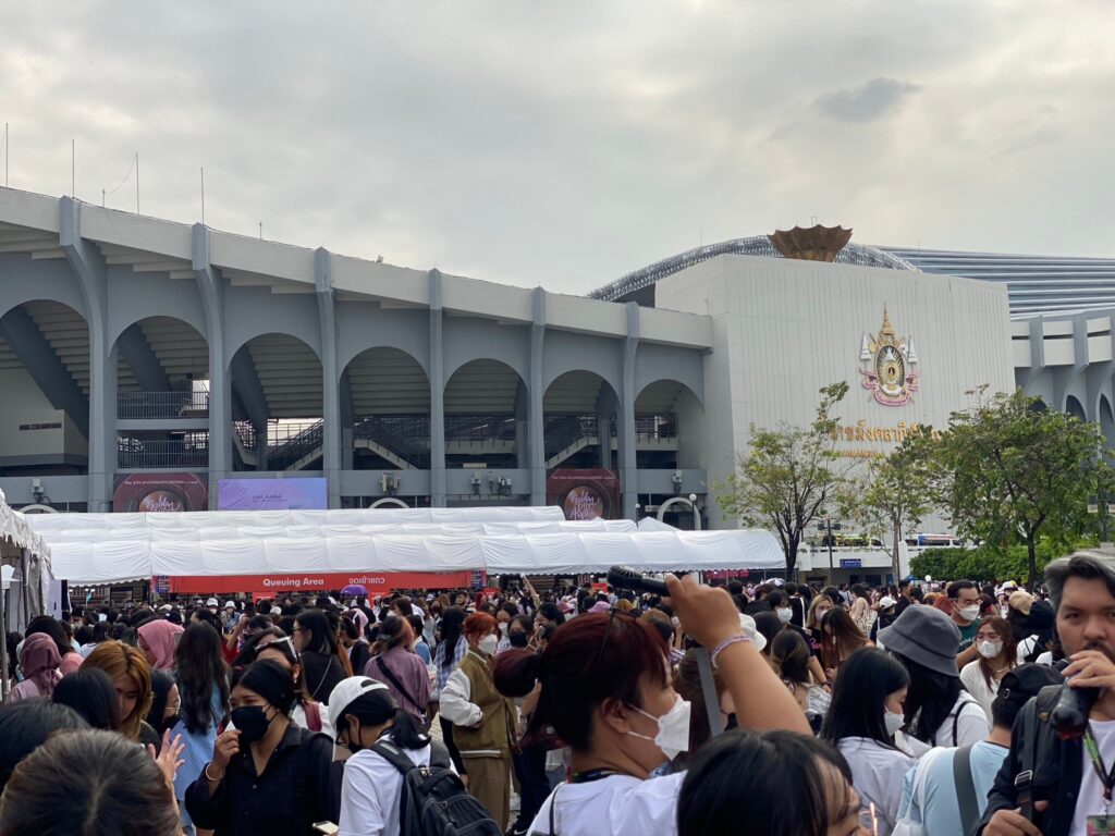 โดยบรรยากาศที่สนามราชมังฯ เป็นไปอย่างคึกคัก แฟนคลับทั้งชาวไทยและชาวต่างชาติเดินทางมาร่วมงานอย่างต่อเนื่อง มีบูธกิจกรรมมากมายให้ได้ร่วมรับชมและเล่นเกมส์