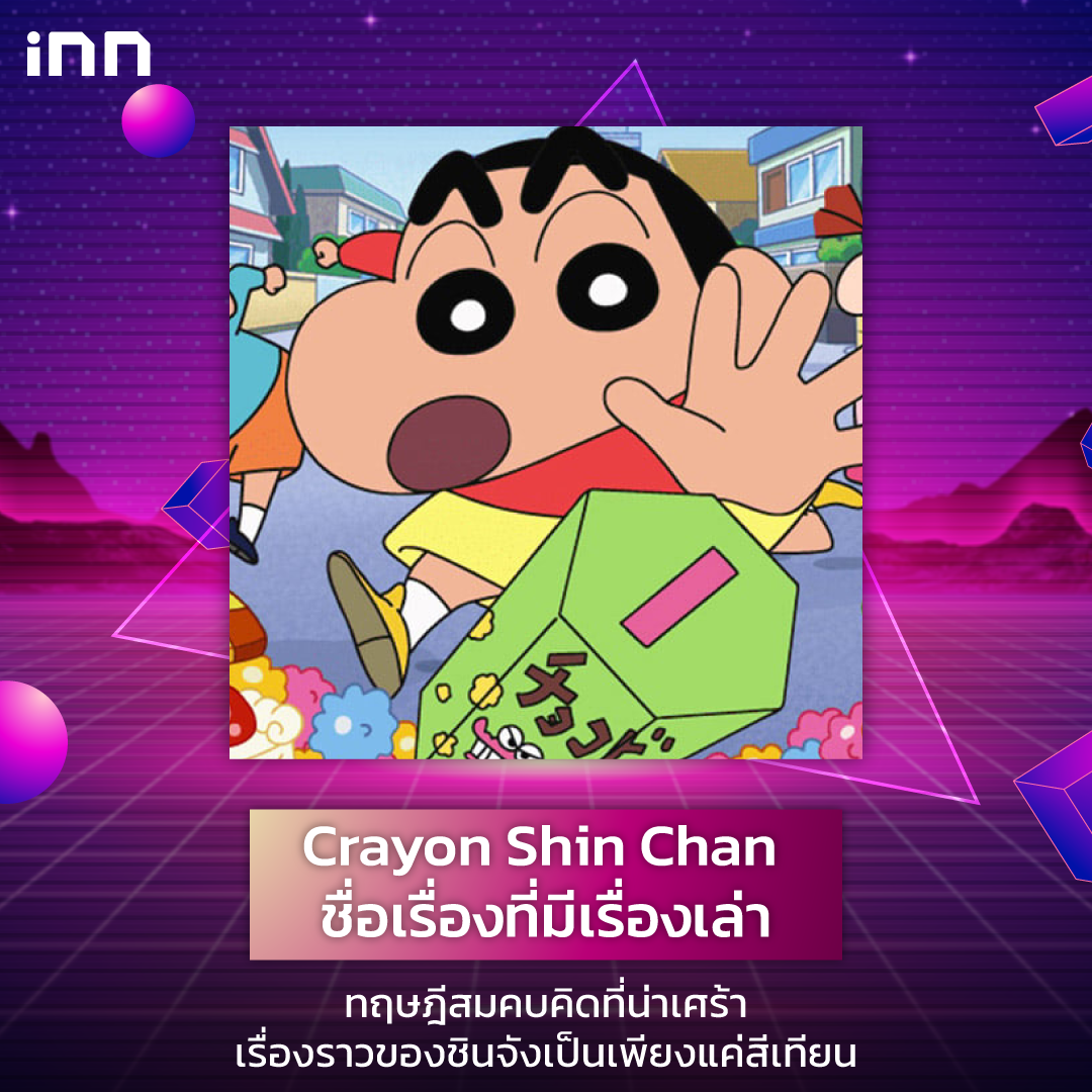 อีกการ์ตูนขวัญใจเด็กเล็กเด็กโตกับความน่ารักกวนโอ๊ยของ ชินจังจอมแก่น ที่ป่วนได้ทุกอย่างบนโลกโดยเฉพาะคุณแม่อย่าง มิซาเอะ เรื่องที่ดูแล้วผ่อนคลายแบบสุด ๆ กลับมีทฤษฎีสมคบคิดที่น่าเศร้าอย่างตรงกันข้าม เช่นที่ว่า ชินจังนั้นเสียชีวิตจากอุบัติเหตุไปแล้ว แต่มิซาเอะหรือแม่ของชินจังไม่สามารถยอมรับกับการสูญเสียนี้ได้ จึงนำสีเทียน (Crayon) มาวาดเล่าเรื่องราวของชินจังที่อยู่ในความทรงจำของคุณแม่จึงเป็นชื่อเรื่องว่า Crayon Shin Chan