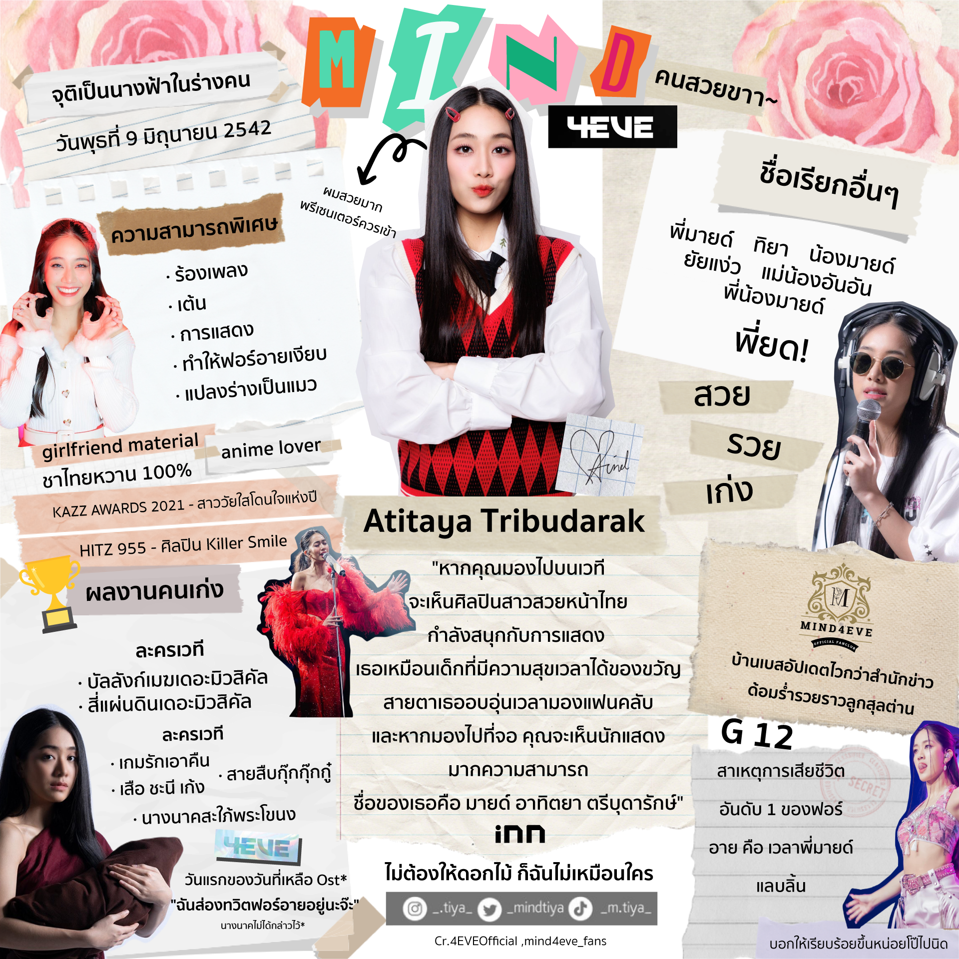หลังจากไอ.เอ็น.เอ็น.ได้เขียนเรื่องราวความประทับใจ 4EVE THE 1st CONCERT FRIENDS & FAMILY ยังรู้สึกว่าเราหาทางออกจากศูนย์ประชุมแห่งชาติสิริกิติ์ไม่เจอเท่าไรเพราะประทับใจในตัว 7 สาวโฟร์อีฟที่ Performance ได้ยอดเยี่ยมสมฉายาราชินีวงการ T-Pop อีกเหตุผลคือเรายังติดอยู่กับรอยยิ้มแห่งความสุขของ “มายด์ อาทิตยา ตรีบุดารักษ์” สมาชิกคนโตของวงที่ความสวยราวกับหลุดมาจากวรรณคดีแถมเสียงร้องก็ทรงพลังจนอยากให้ทุกคนรู้จักเธอมากขึ้น