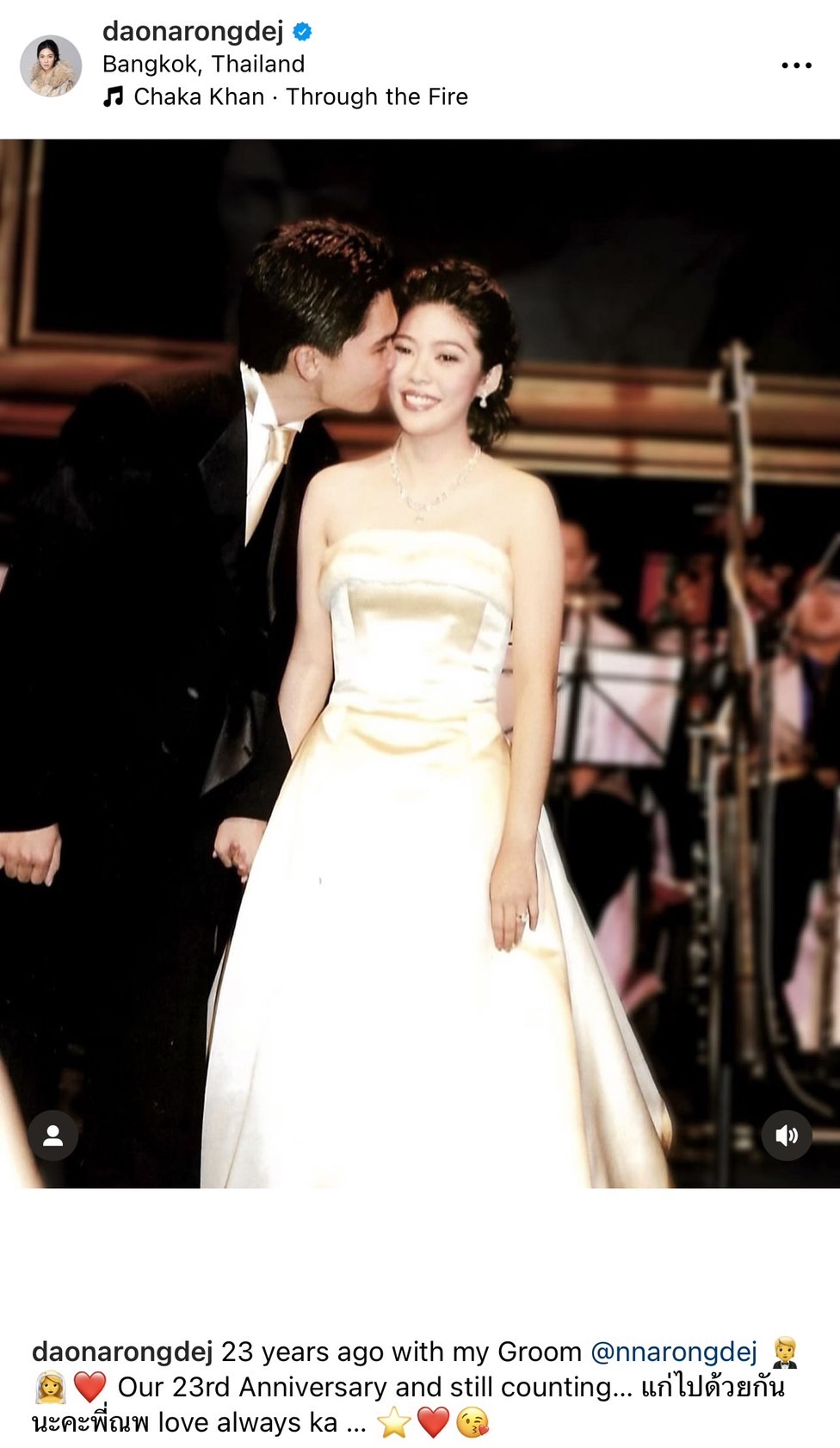 “23 years ago with my Groom @nnarongdej Our 23rd Anniversary and still counting… แก่ไปด้วยกันนะคะพี่ณพ love always ka …”