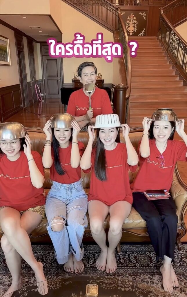 คุณแม่ : จะเคาะอย่างไรตั้ง 4 คนเลยเนี่ย (แล้วก็เอาตะคริวเคาะยาวทั้งสี่คนเลย)