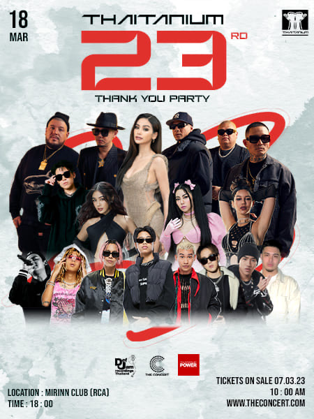เซเลเบรท 23 ปี “THAITANIUM” ส่งเพลงฮิต “Ta Lueng Baby” รีมิกซ์เวอร์ชั่นใหม่ ดึง “อิงฟ้า-TWOPEE-SARAN-FIIXD” ร่วมรันวงการแรปให้เดือดอีกครั้ง!! ก่อนระเบิดความมันส์ในงาน “THAITANIUM 23rd THANK YOU PARTY” 18 มีนาคมนี้!!