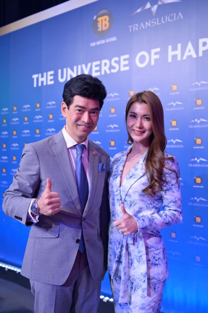ดร.ชวัลวัฒน์ อริยวรารมย์ ประธานกรรมการบริหารและผู้ก่อตั้ง บริษัท ทีแอนด์บี มีเดีย โกลบอล (ประเทศไทย) และผู้ก่อตั้งทรานส์ลูเซีย และ คุณทิพพาภรณ์ อริยวรารมย์ ประธานกรรมการบริษัท MQDC (บริษัท แมกโนเลีย ควอลิตี้ ดีเวล็อปเม้นต์ คอร์ปอเรชั่น จำกัด) จัดงาน “The Universe of Happiness” เปิดตัวโครงการใหญ่ศูนย์รวมแห่งเมตาเวิร์ส ทรานส์ลูเซีย (Translucia) ภายใต้คอนเซ็ปต์ “Infinite Universe of Interconnected Metaverses” ซึ่งเป็นการผสมผสานเทคโนโลยีล้ำหน้าของโลกอย่าง Web3 มาใช้เพื่อพัฒนา ทรานส์ลูเซียให้เป็นแพลตฟอร์มใหญ่รองรับเมตาเวิร์สจำนวนมหาศาลให้เข้ามาอยู่ร่วมกันและสามารถเชื่อมต่อถึงกันทั้งหมดได้อย่างไร้รอยต่อ พร้อมนำพาธุรกิจบันเทิงของ ทีแอนด์บีฯ เข้าสู่ธุรกิจโลกเสมือนอย่างเต็มตัวในยุคเทคโนโลยีแห่งอนาคต เพื่อก้าวสู่ความเป็นผู้นำด้านธุรกิจบันเทิงระดับโลก