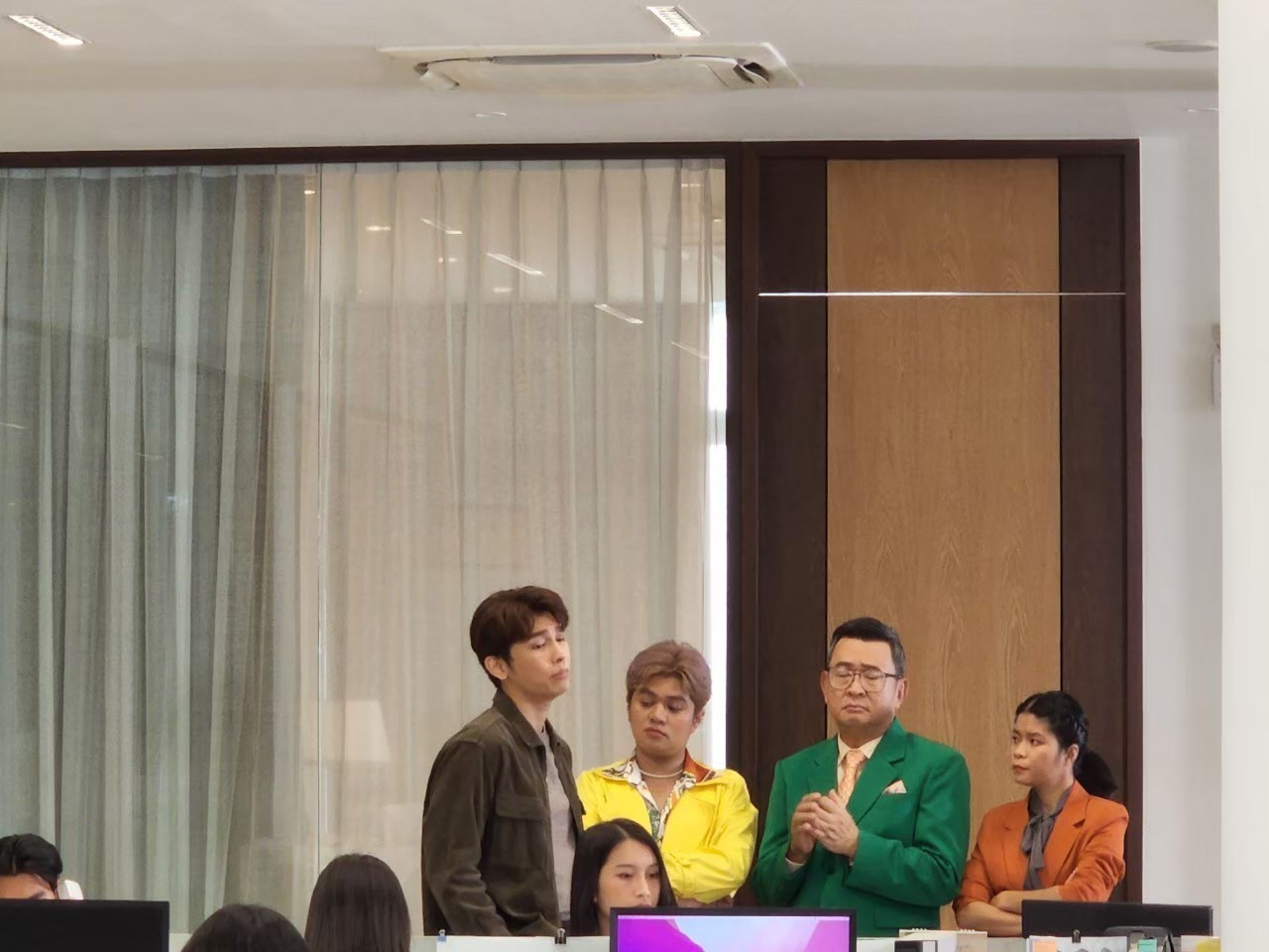 เพชร วรายุ และ เขตต์ ฐานทัพ ผู้กำกับฯ พูดคุยกับ หนุ่มมิว ถึงคาแร็กเตอร์ในฉากนี้ ซึ่งจะมีทั้งอารมณ์เศร้า และอารมณ์ฮาอยู่ในตัว ซึ่งหลังจาก ป๊อป รู้ว่าตัวเองถูกไล่ออก ก็พยายามใจดีสู้เสือ หาแนวร่วมไปสร้างอนาคตใหม่ที่ดีกว่าด้วยกัน ขอบอกว่า…ฉากนี้นักแสดงหลักอย่าง หนุ่มมิว และนักแสดงสมทบ ทำการแสดงได้ฮากันมากๆ