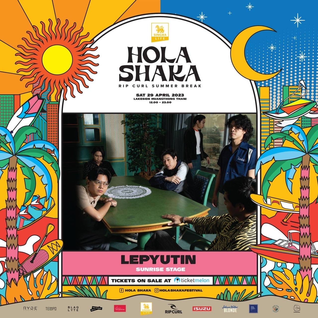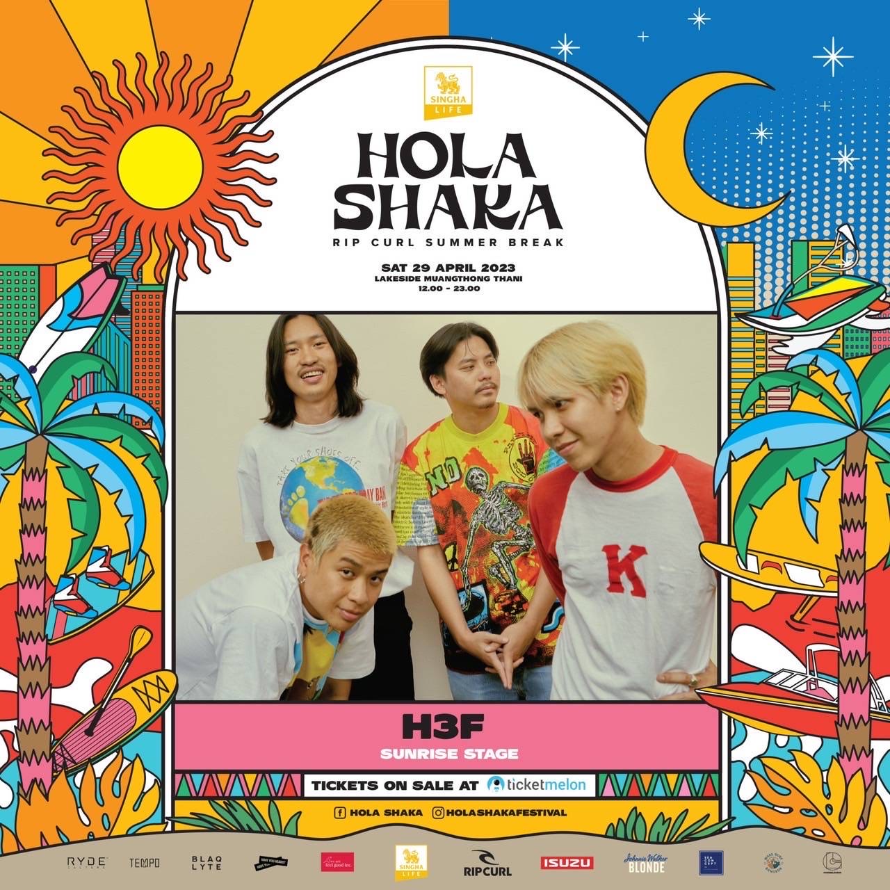 งานเทศกาลดนตรีหน้าร้อน One Day ครบทุกรสชาติอารมณ์ พร้อมนิยาม 3 สุด ‘สุดมันส์’ ‘สุดเหวี่ยง’ และ ‘สุดคุ้ม’!! ใครยังไม่มีบัตรรีบจับจอง บัตร Regular ราคา 2,300 บาท ผ่านทาง https://www.ticketmelon.com/ripcurl/holashaka ได้แล้ววันนี้ ซึ่งก่อนหน้านี้กระแสตอบรับอันล้นหลามทำให้บัตรรอบ Early Bird Sold Out!! หมดเกลี้ยงภายใน 20 นาที ตั้งแต่วันแรก ปังขนาดนี้!! ไม่กดไม่ได้แล้วนะ … เพราะถ้าบัตรหมดรอบนี้ต้องไปลุ้นอีกครั้งในวันงาน Phase สุดท้ายกับบัตร At Door มูลค่า 2,800 บาท แล้วเจอกันวันที่ 29 เมษายน 2566 ณ ทะเลสาบ เมืองทองธานี ชาว HOLA SHAKA สามารถติดตามความเคลื่อนไหว และรายละเอียดของงานทั้งหมดได้ที่