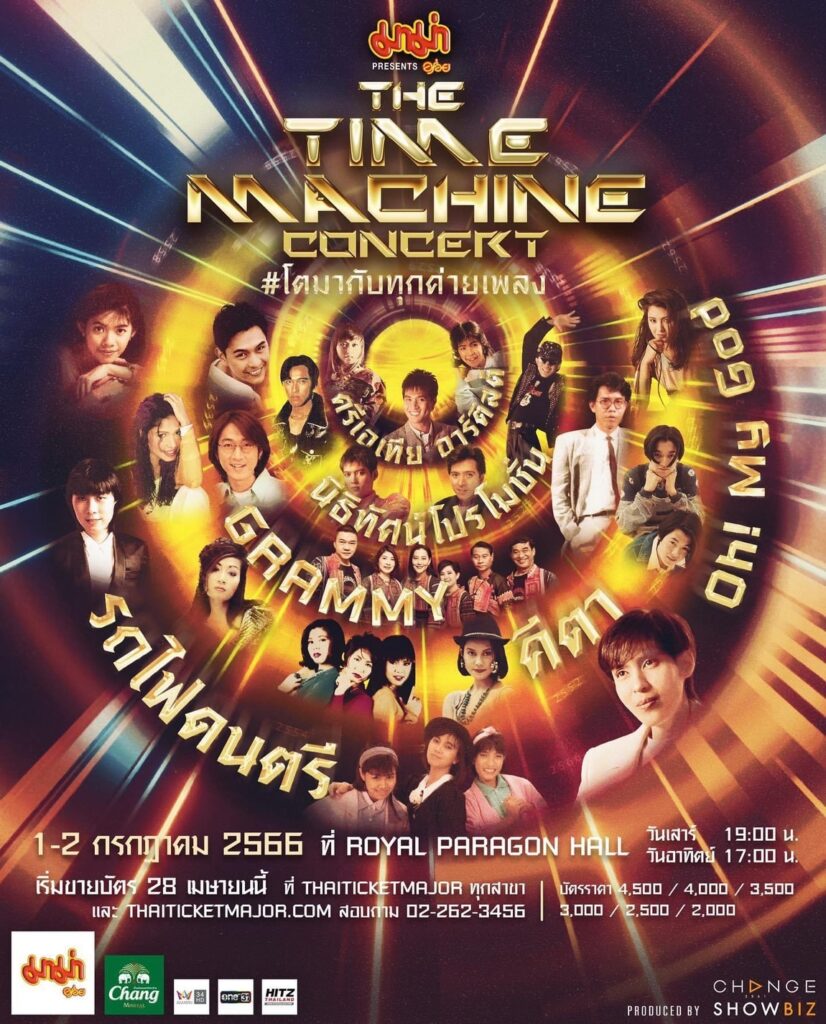 CHANGE Showbiz เตรียมพาทุกคนนั่งไทม์แมชชีนย้อนเวลากลับไปในยุคทองของวงการเพลงไทย ในคอนเสิร์ตครั้งประวัติศาสตร์ มาม่า presents THE TIME MACHINE CONCERT #โตมากับทุกค่ายเพลง กับการรวมตัวของ 31 ศิลปิน จาก 6 ค่ายเพลงดังแห่งยุค 80-90 ระดับตำนานมายืนอยู่บนเวทีเดียวกัน ไม่ว่าจะเป็น ค่ายรถไฟดนตรี สาวสาวสาว, ประวิทย์ ฟรีเบิร์ด, เอ๋ พัณนิดา / ค่ายนิธิทัศน์ โปรโมชั่น ตู้ ดิเรก, ติ๊ก ชิโร่, แซม ยุรนันท์, อลิศ คริสตัน / ค่ายครีเอเทีย อาร์ติสต์ ปั่น ไพบูลย์เกียรติ, อุ้ย รวิวรรณ , อ้อย กะท้อน / ค่าย GRAMMY นกแล, ชรัส เฟื่องอารมย์, กบ ทรงสิทธิ์, ดา อินคา / ค่ายคีตา ฝันดีฝันเด่น, ฮันนี่ ภัสสร, บุ๋ม ตรีรัก, ที-สเกิ๊ต, เอ้ ชุติมา, ยุ้ย ปัทมวรรณ และค่าย Oh! MyGod ปุ๊ อัญชลี ที่มาพร้อมกับเพลงฮิตเพลงเพราะท่าเต้นสุดจ๊าบในตำนานที่ยังคงเป็นภาพจำในหัวใจ ภายใต้ Production ฉาก เวที แสง สี เสียง เต็มรูปแบบตามแบบฉบับ CHANGE Showbiz และนอกจากความสุขจากเสียงเพลงและความสนุกสนานกับศิลปินที่ทุกคนคิดถึงแล้วการซื้อบัตรชมคอนเสิร์ตครั้งนี้ยังได้ทำบุญร่วมกันอีกด้วย เพราะรายได้ส่วนหนึ่งจากคอนเสิร์ตในครั้งนี้ CHANGE2561 จะมอบให้กับ “มูลนิธิพิทักษ์ดวงตาประชาชน” เพื่อช่วยเหลือผู้ป่วยทางสายตาที่มีฐานะยากจน
