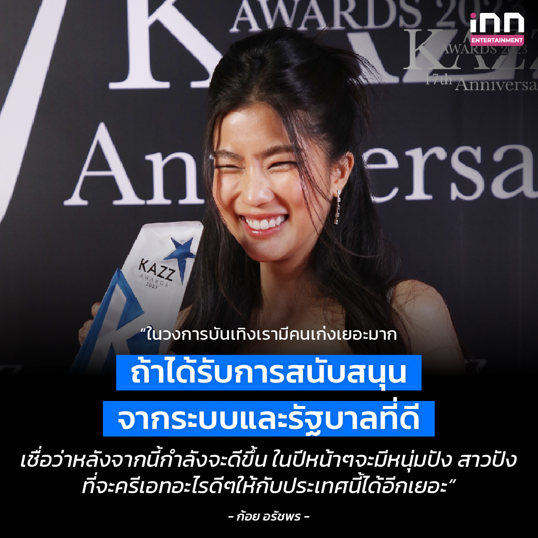 “ในวงการบันเทิงเรามีคนเก่งเยอะมาก ถ้าได้รับการสนับสนุนจากระบบและรัฐบาลที่ดีนะคะ ซึ่งเชื่อว่าหลังจากนี้กำลังจะดีขึ้นค่ะ เชื่อว่าในปีหน้าๆ จะมีหนุ่มปัง สาวปัง ที่จะครีเอทอะไรดีๆให้กับประเทศนี้ได้อีกเยอะ”