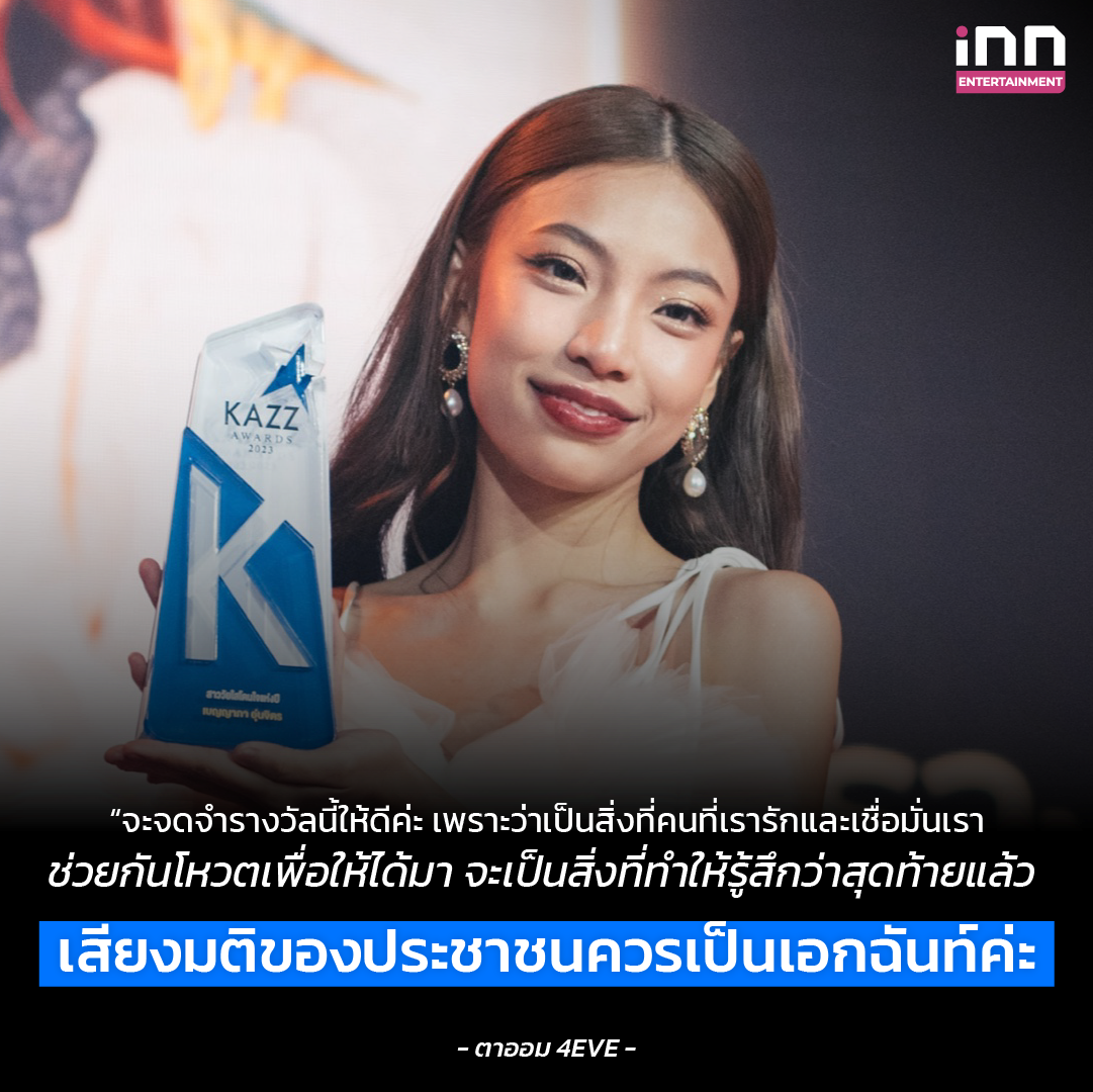“จะจดจำรางวัลนี้ให้ดีค่ะ เพราะว่าเป็นสิ่งที่คนที่เรารักและเชื่อมั่นเรา ช่วยกันโหวตเพื่อให้ได้มา จะเป็นสิ่งที่ทำให้รู้สึกว่าสุดท้ายแล้ว เสียงมติของประชาชนควรเป็นเอกฉันท์ค่ะ”