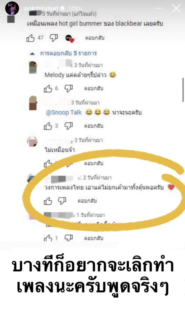 กลายเป็นกระแสดราม่าที่ถูกวิพากษ์วิจารณ์กันบนโลกออนไลน์กันอยู่ตอนนี้ สำหรับเพลงF*cking Like You” feat.MAIYARAP ซิงเกิ้ลใหม่ของนักร้องแรปเปอร์ชื่อดัง “ป๊อก ภัสสรกรณ์ จิราธิวัฒน์” หลังถูกชาวเน็ตนำไปเปรียบเทียบมีความละม้ายคล้ายคลึงกับเพลงดังอย่าง Hot Girl Bummer ของ blackbear งานนี้ทำเอาชาวเน็ตแห่เข้ามาคอมเมนต์สนั่น อาทิ”ก็ถนัดก็อปมาตั้งนานแล้ว”,วงการเพลงไทยไม่ยกเขามาทั้งดุ้นพอครับ”,”ไม่คิดจะเลิกเนอะ” และอีกมากมาย