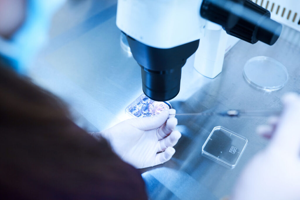 Microscope of reproductive medicine clinic fertilizing egg outside female body